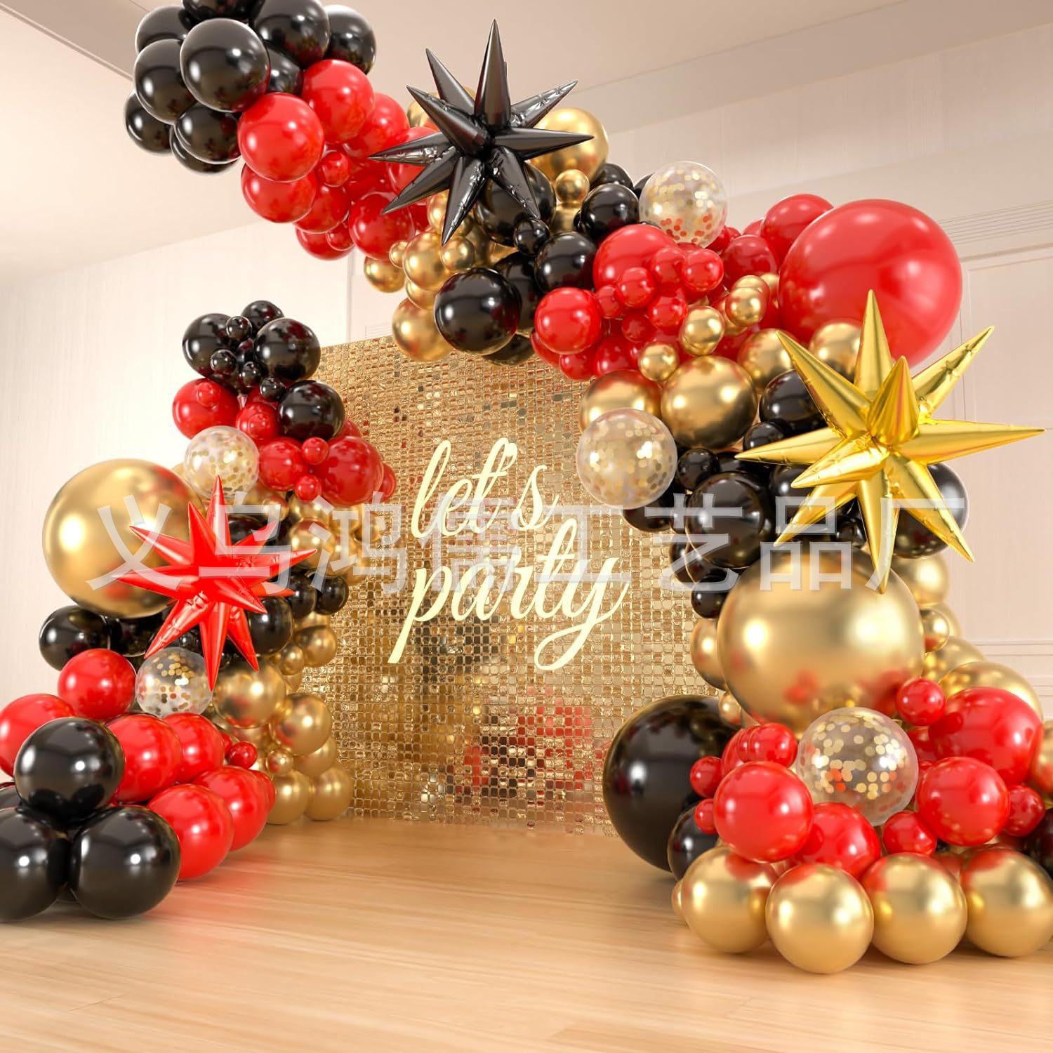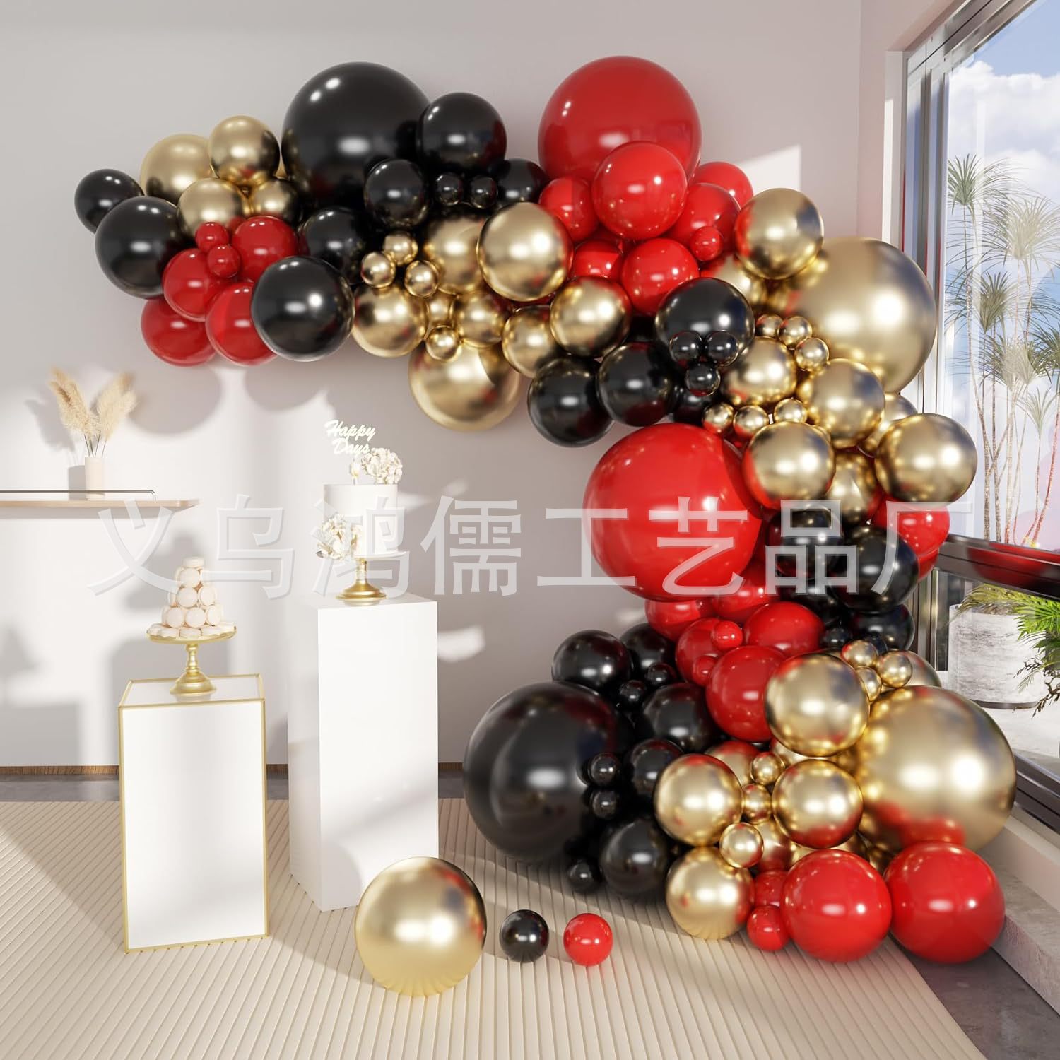 • 블랙 레드 골드 풍선 체인 비오는 생일 풍선 체인