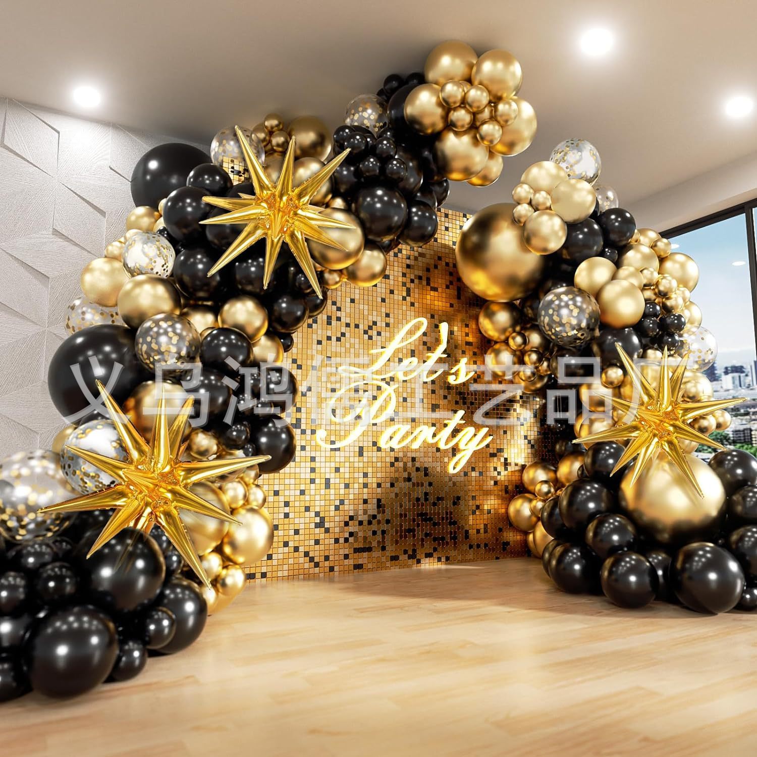 • 블랙 골드 폭발성 스타 새해 생일 졸업 시즌 풍선 체인