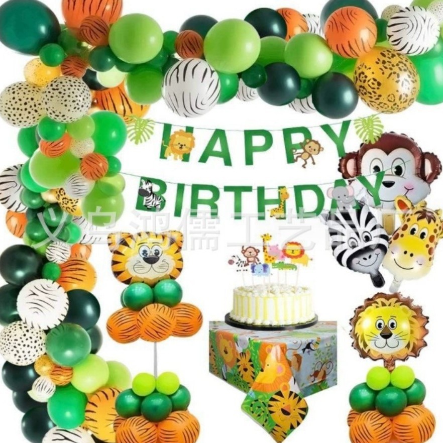 • 녹색 숲 정글 생일 (동물 공룡 및 기타 테마 풍선을 추가 할 수 있음)
