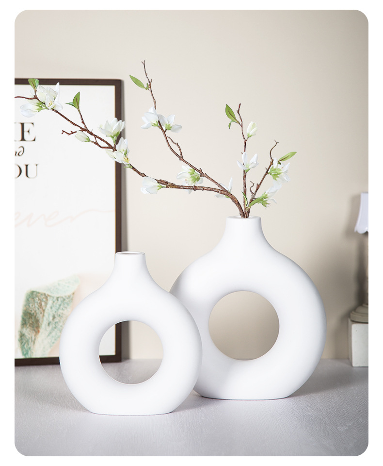 공장 도매 도넛 플라스틱 꽃병 모방 세라믹 장식 창조적 인 거실 장식 두 반쪽 바느질스토어 가기
