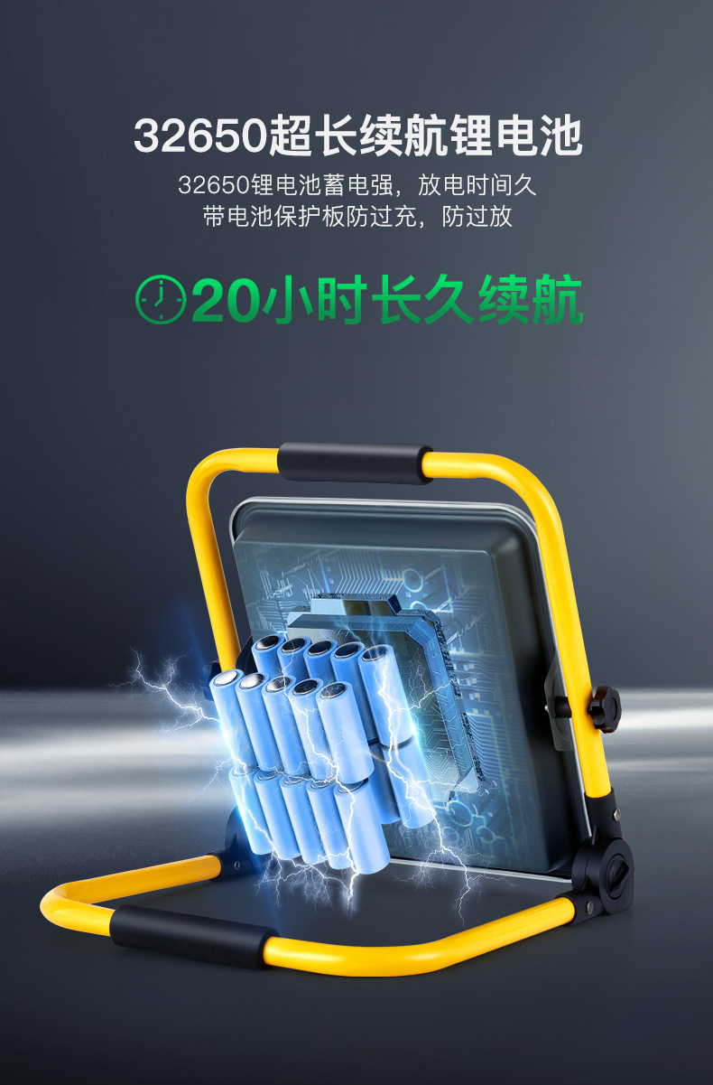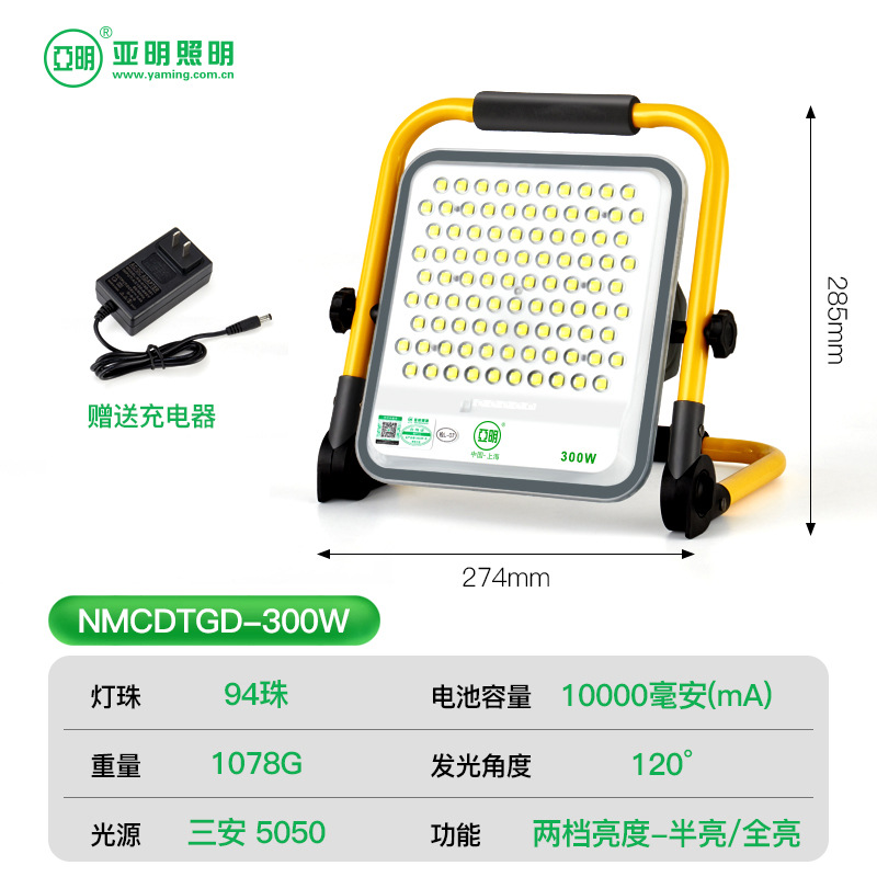 야밍 충전식 플러드 라이트 리튬 배터리 브래킷 렌즈 휴대용 야외 캠핑 조명 사이트스토어 가기