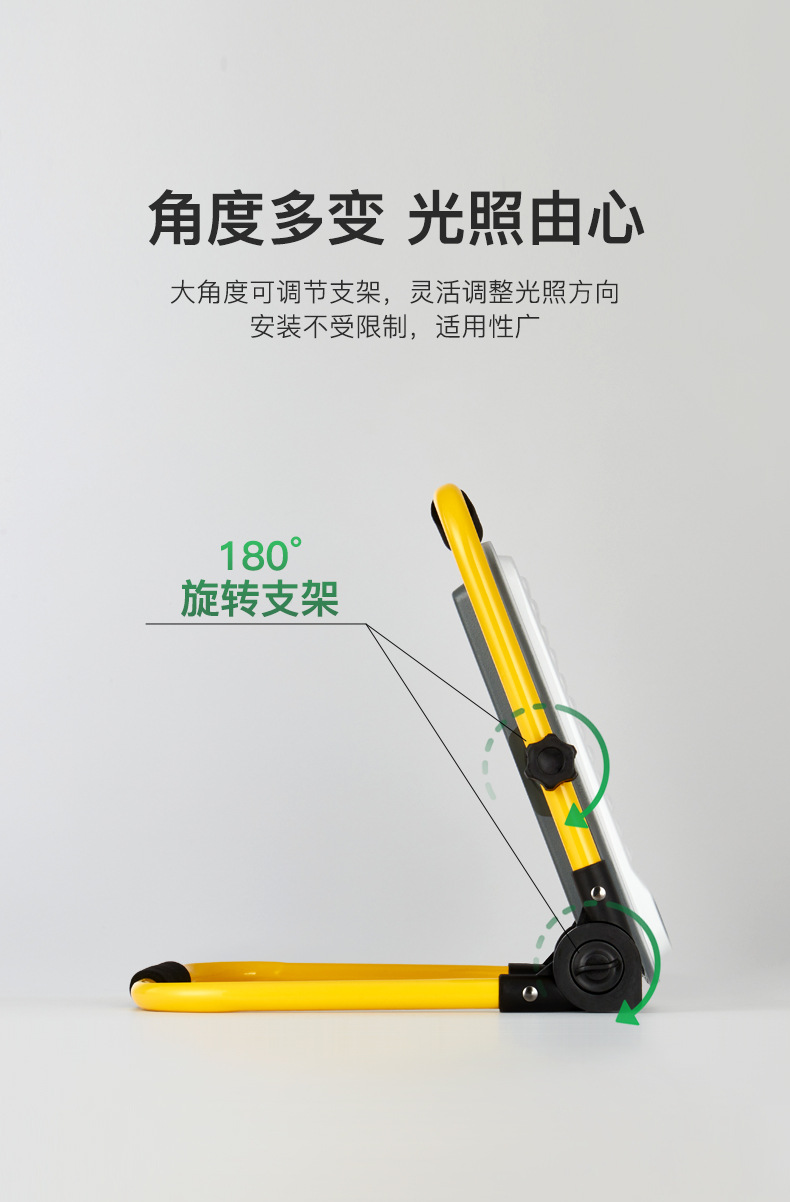 야밍 충전식 플러드 라이트 리튬 배터리 브래킷 렌즈 휴대용 야외 캠핑 조명 사이트