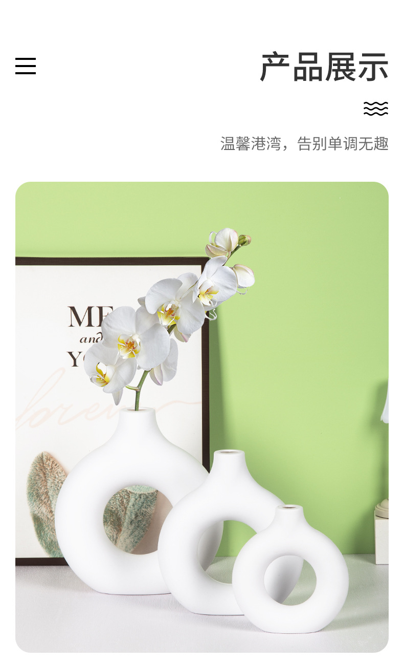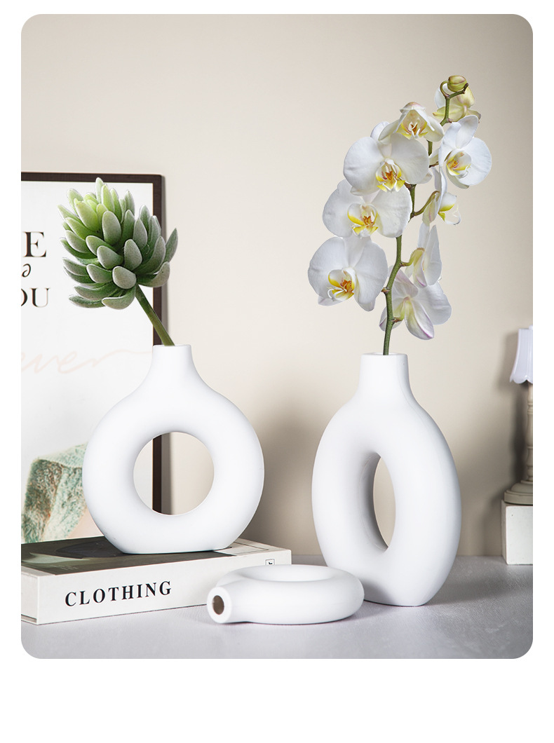 도매 공장에서 제공하는 도넛 모양 플라스틱 화분, 새로운 중국식 장식 꽃병, 세라믹 모조, 두 부분으로 분리된 청화백자스토어 가기
