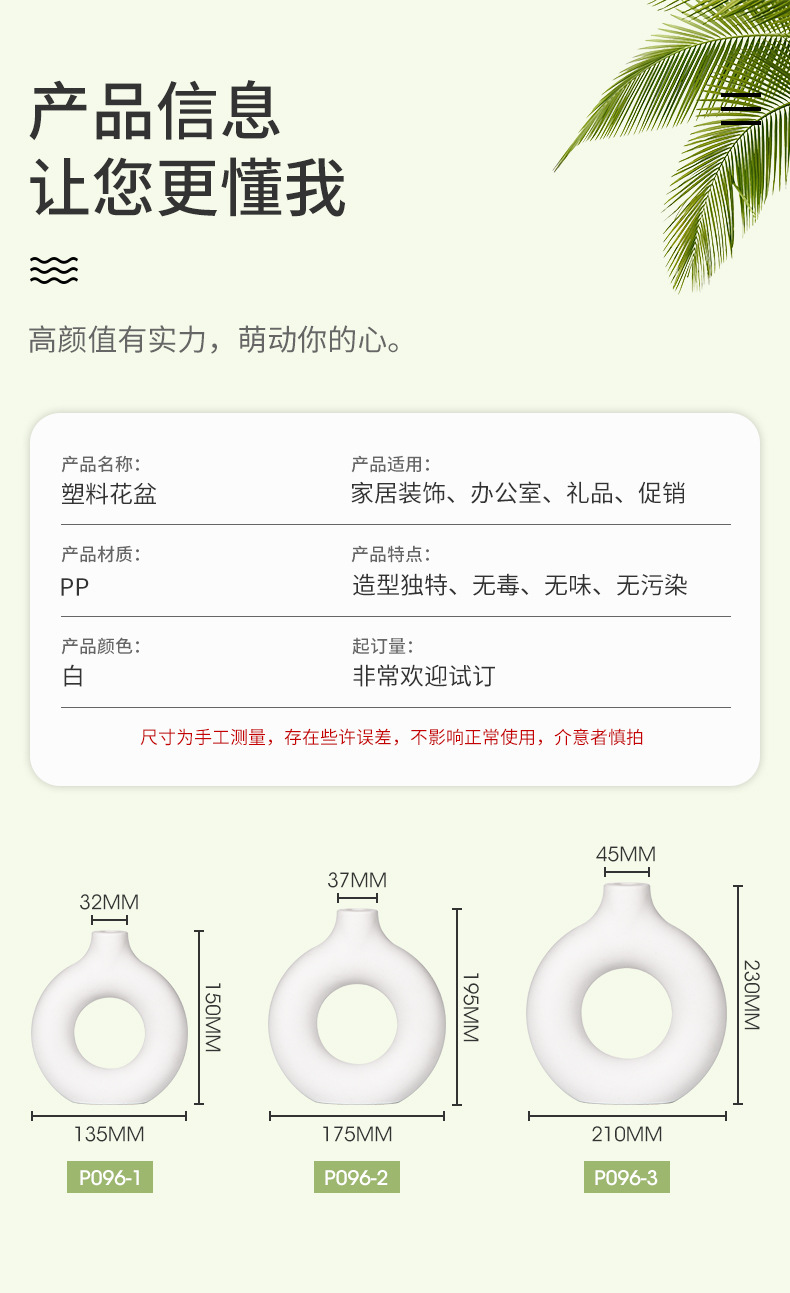 도매 공장에서 제공하는 도넛 모양 플라스틱 화분, 새로운 중국식 장식 꽃병, 세라믹 모조, 두 부분으로 분리된 청화백자