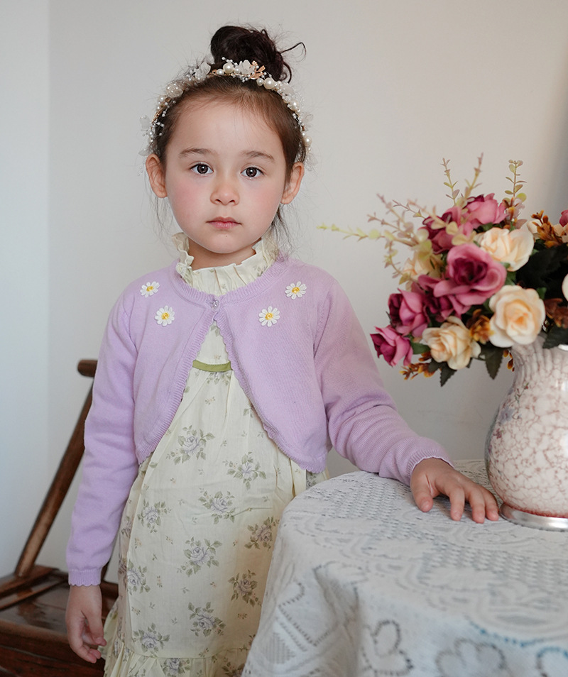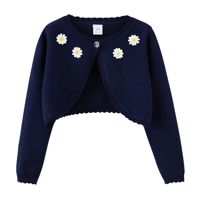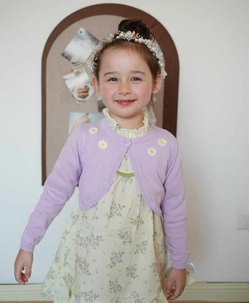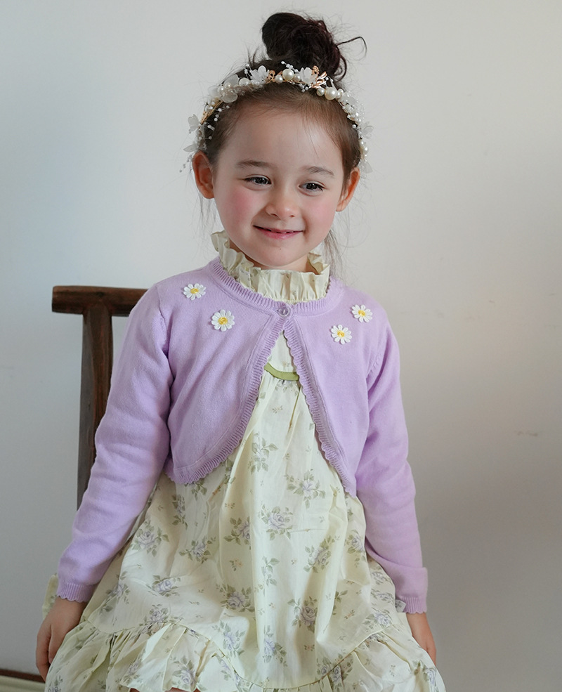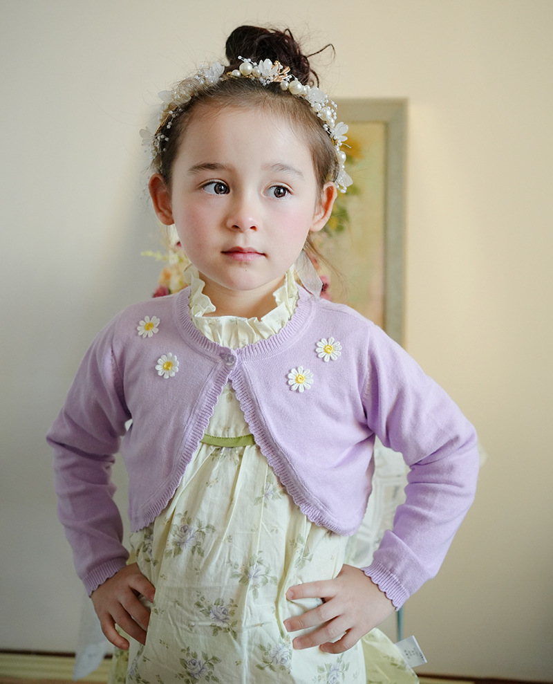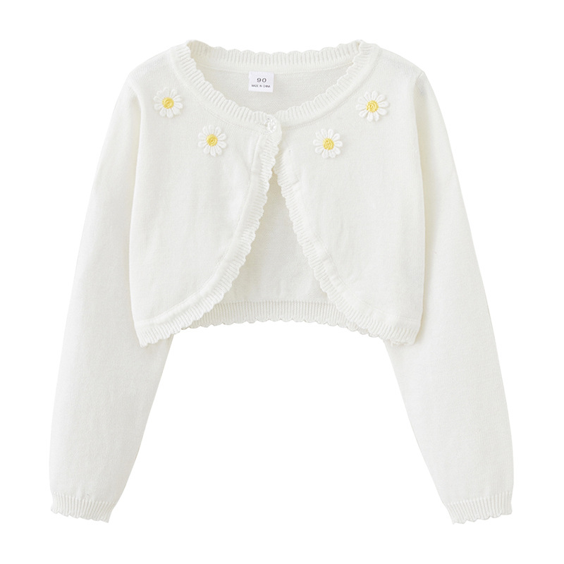 2025 국경 간 순수 코튼 클래스 A 해바라기 어린이 목도리 여름 에어컨 셔츠 소녀 니트 카디건 재킷 도매스토어 가기