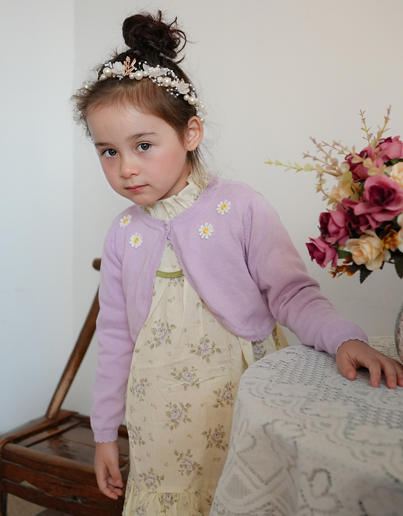 2025 국경 간 순수 코튼 클래스 A 해바라기 어린이 목도리 여름 에어컨 셔츠 소녀 니트 카디건 재킷 도매