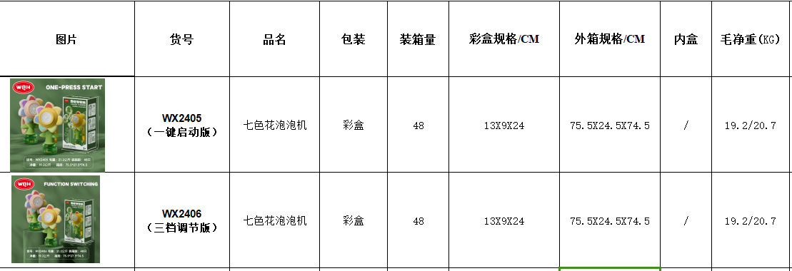• WX2405 노란색 (원 버튼 시작 버전) 7 색 꽃 거품 기계