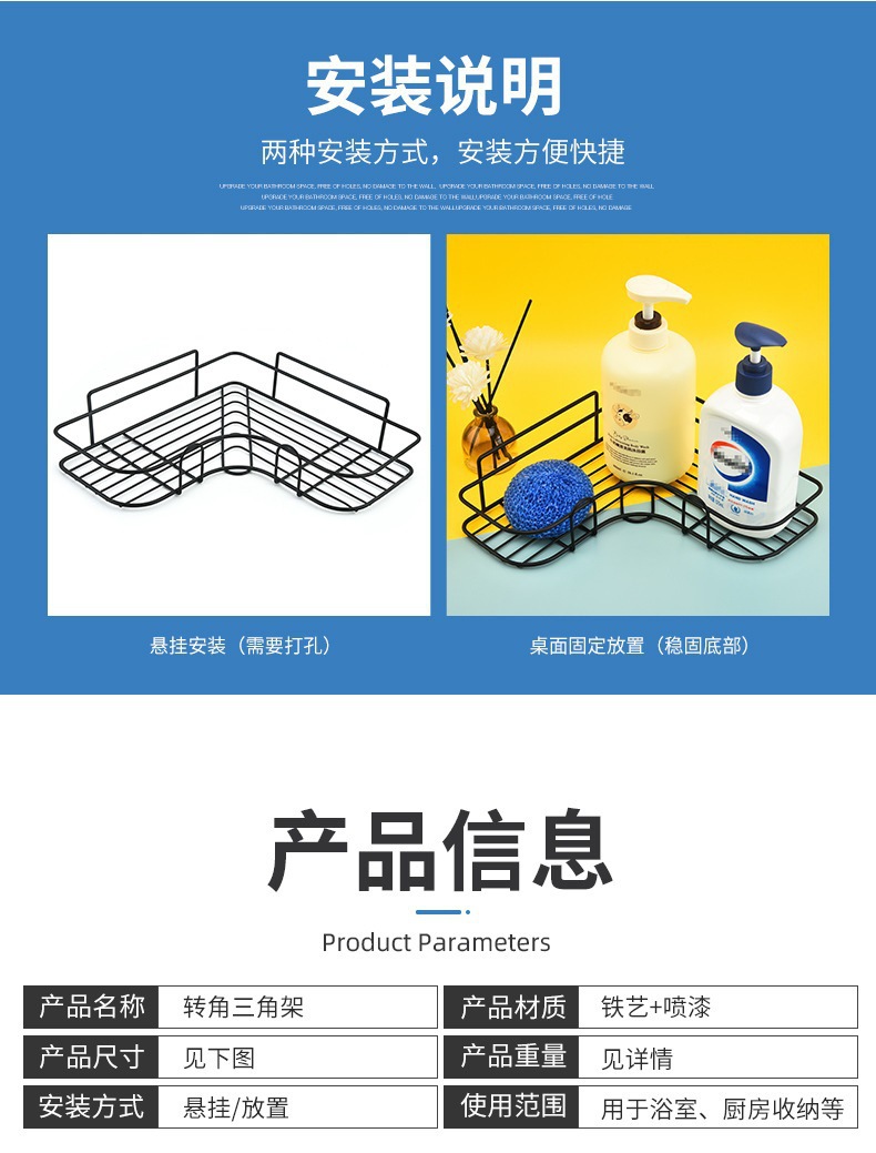 이중층 무타공 두꺼운 욕실 코너 선반 벽걸이형 화장실 삼각 선반