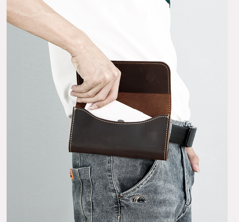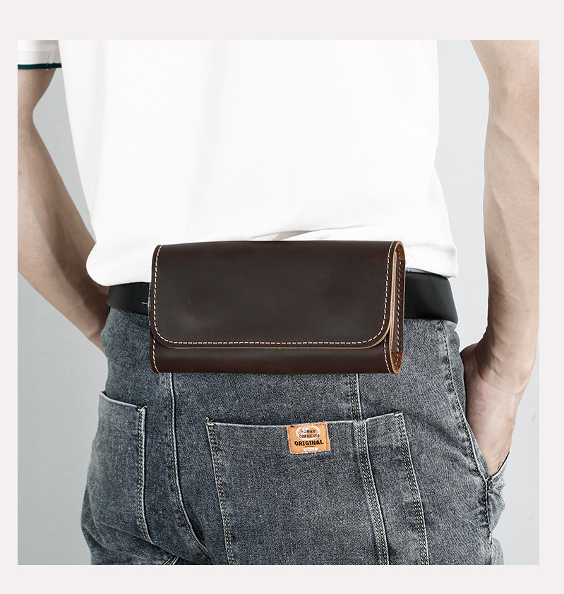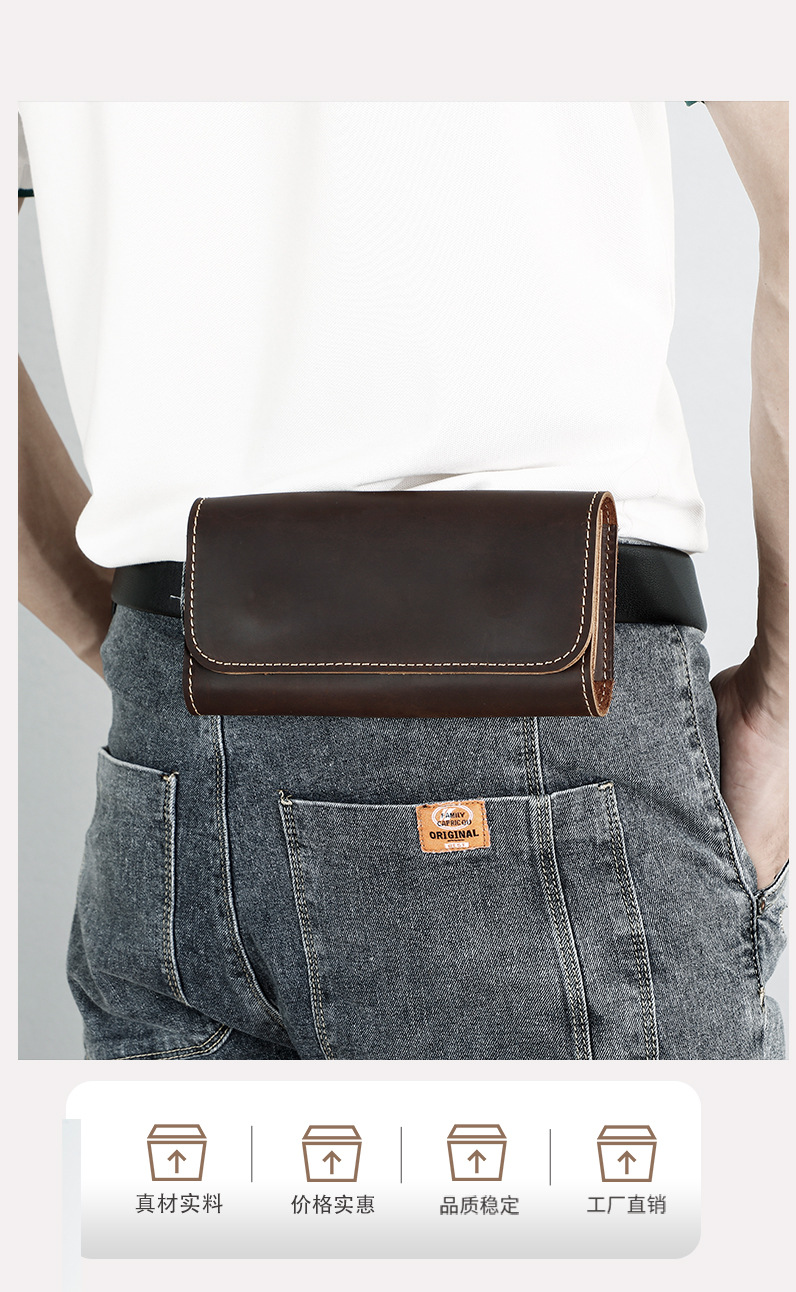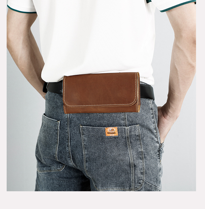 국경 간 남성 정품 가죽 허리 가방 탑 레이어 Cowhide 가죽 벨트 야외 휴대용 소형 가방 iPhoneproMax 휴대 전화 가방스토어 가기