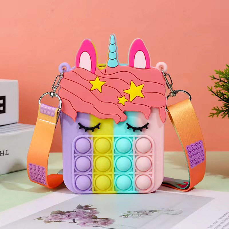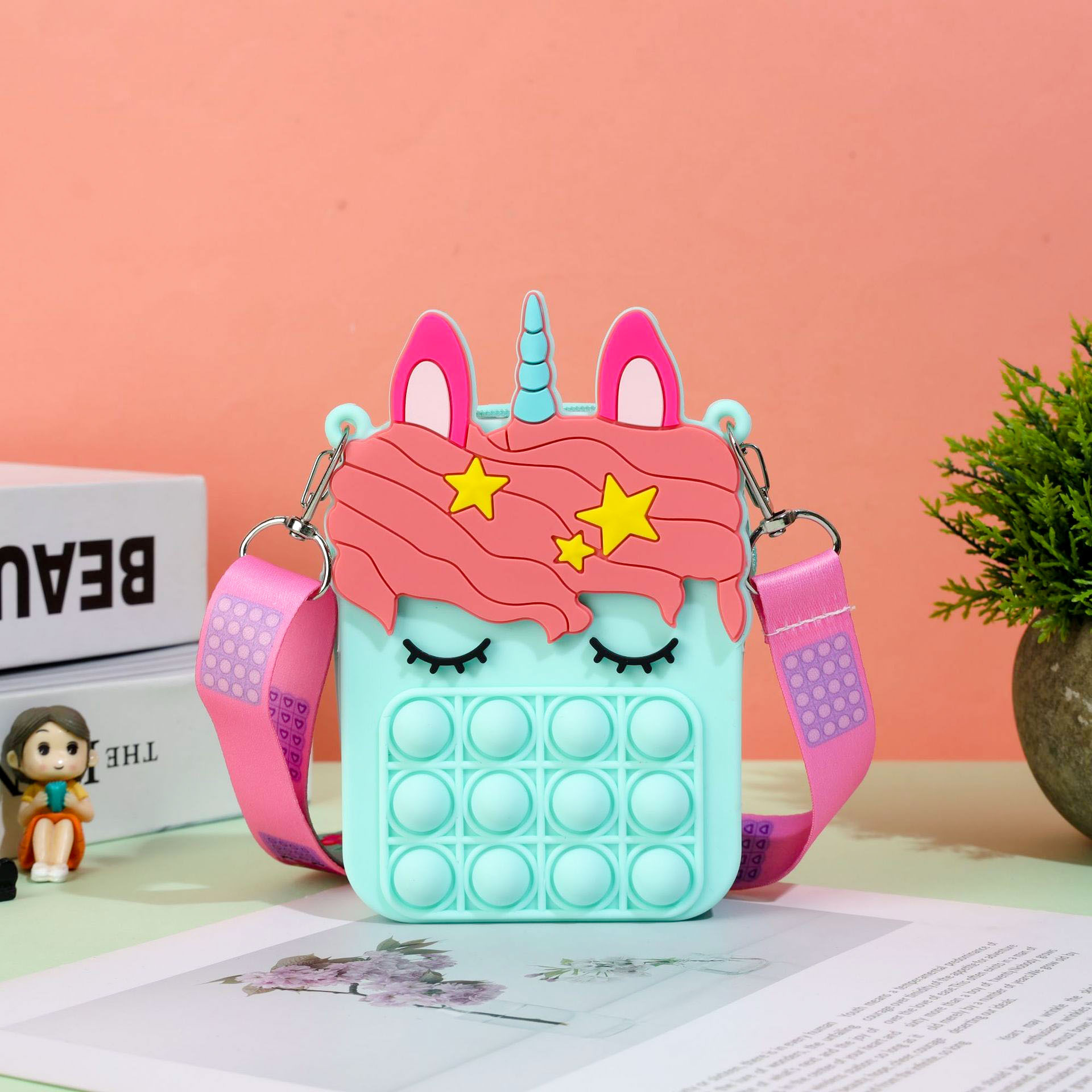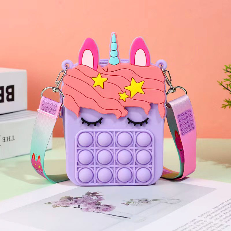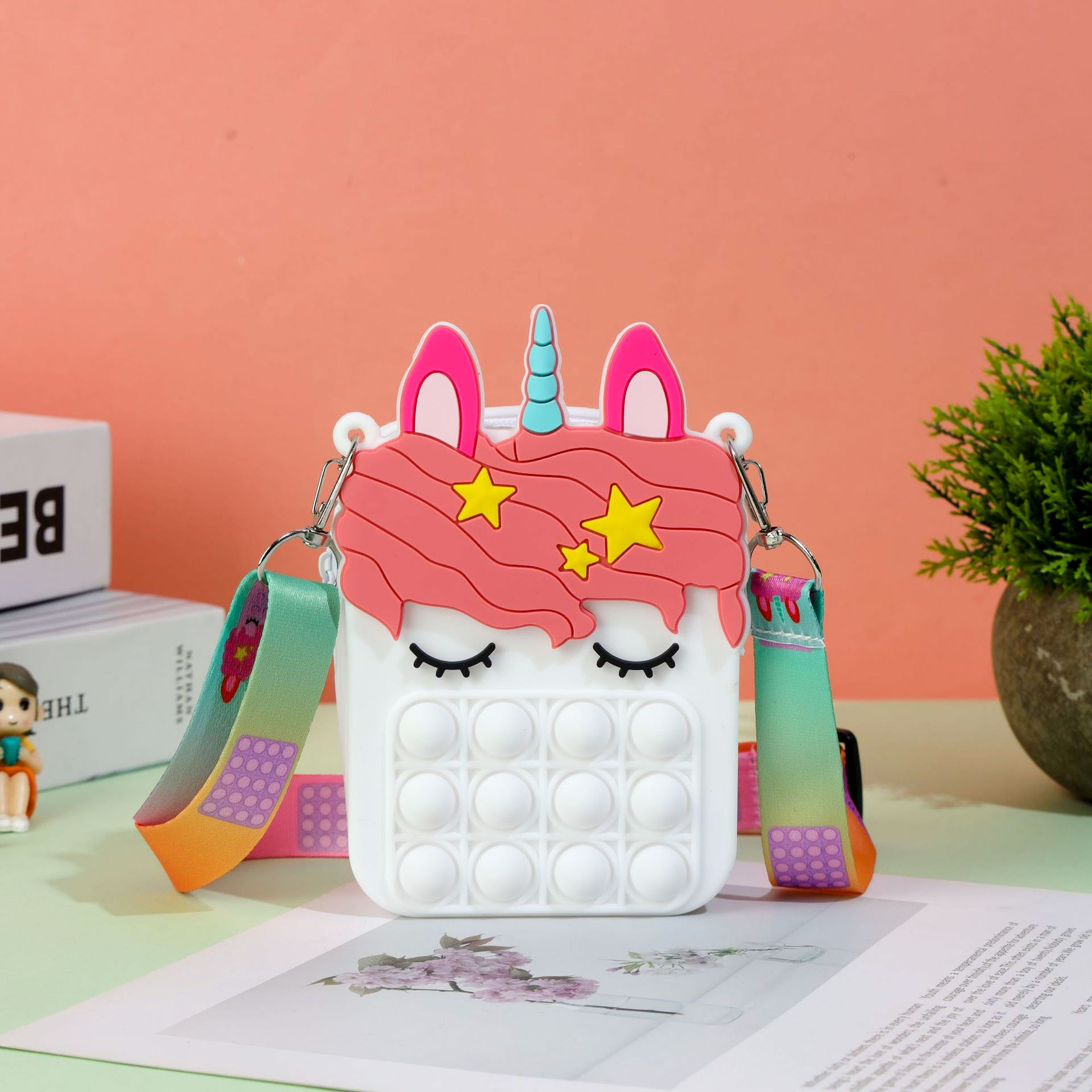Dingli Unicorn 어린이 실리콘 동전 지갑 단일 어깨 크로스 바디 백 만화 설치류 살해 파이오니어 프레스 투 프레스 지갑 여성
