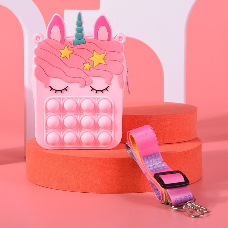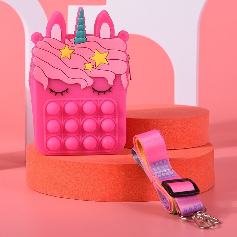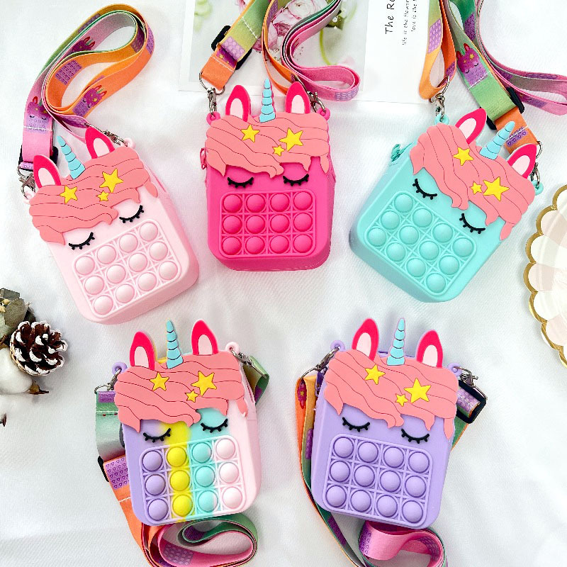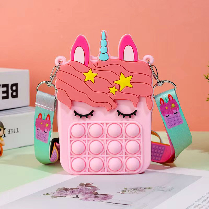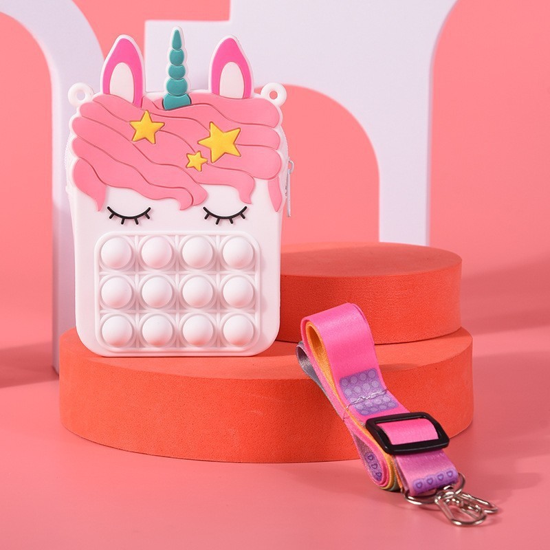 Dingli Unicorn 어린이 실리콘 동전 지갑 단일 어깨 크로스 바디 백 만화 설치류 살해 파이오니어 프레스 투 프레스 지갑 여성