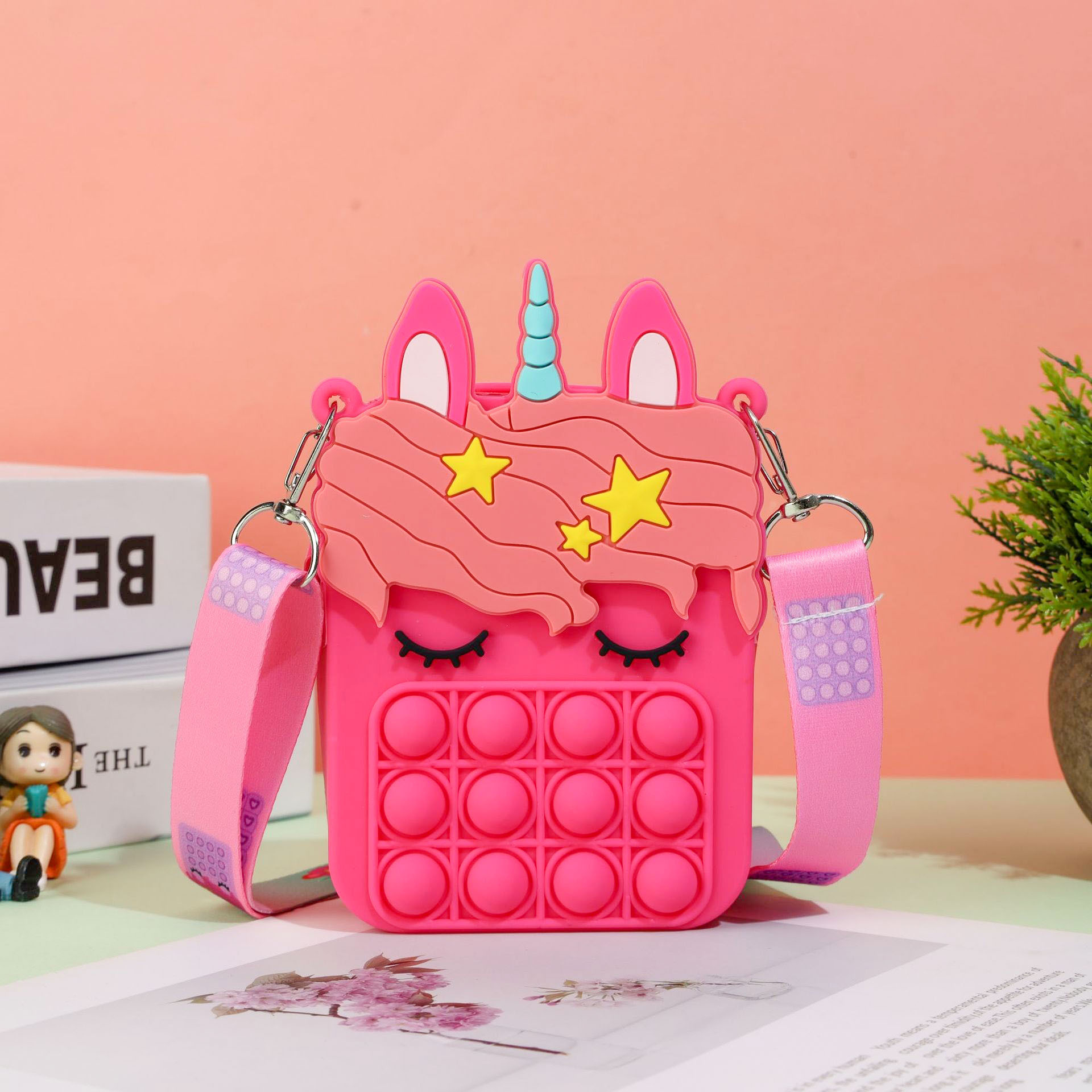 Dingli Unicorn 어린이 실리콘 동전 지갑 단일 어깨 크로스 바디 백 만화 설치류 살해 파이오니어 프레스 투 프레스 지갑 여성스토어 가기