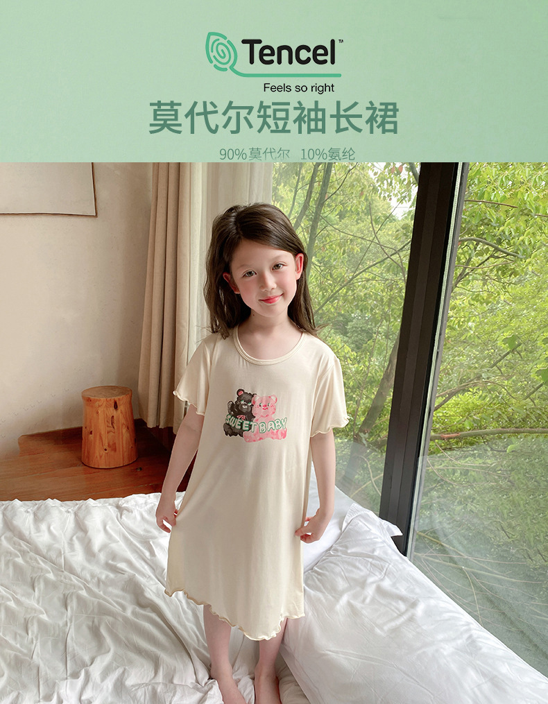 모달 여아 잠옷 여름 여아 원피스 아동 반팔 홈웨어 한국 스타일 여아 잠옷