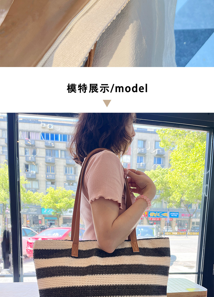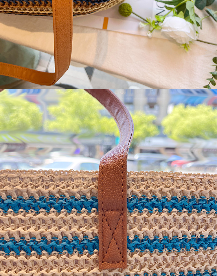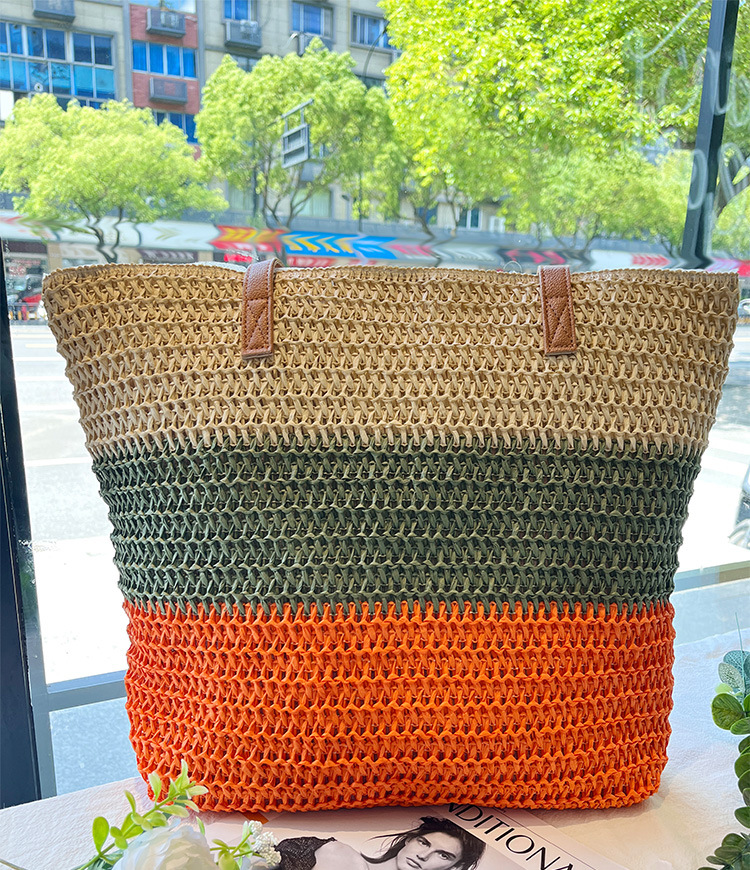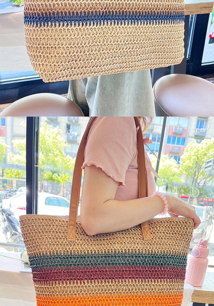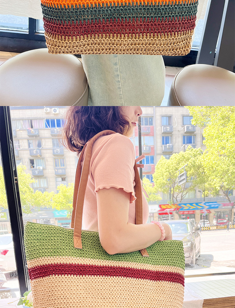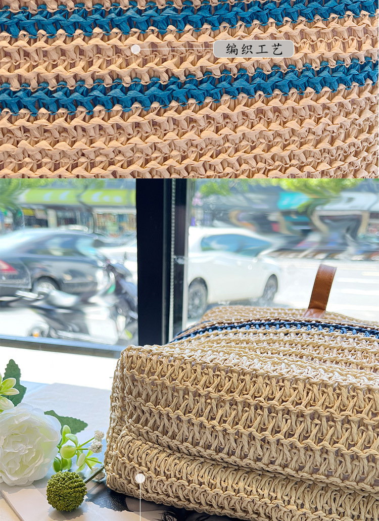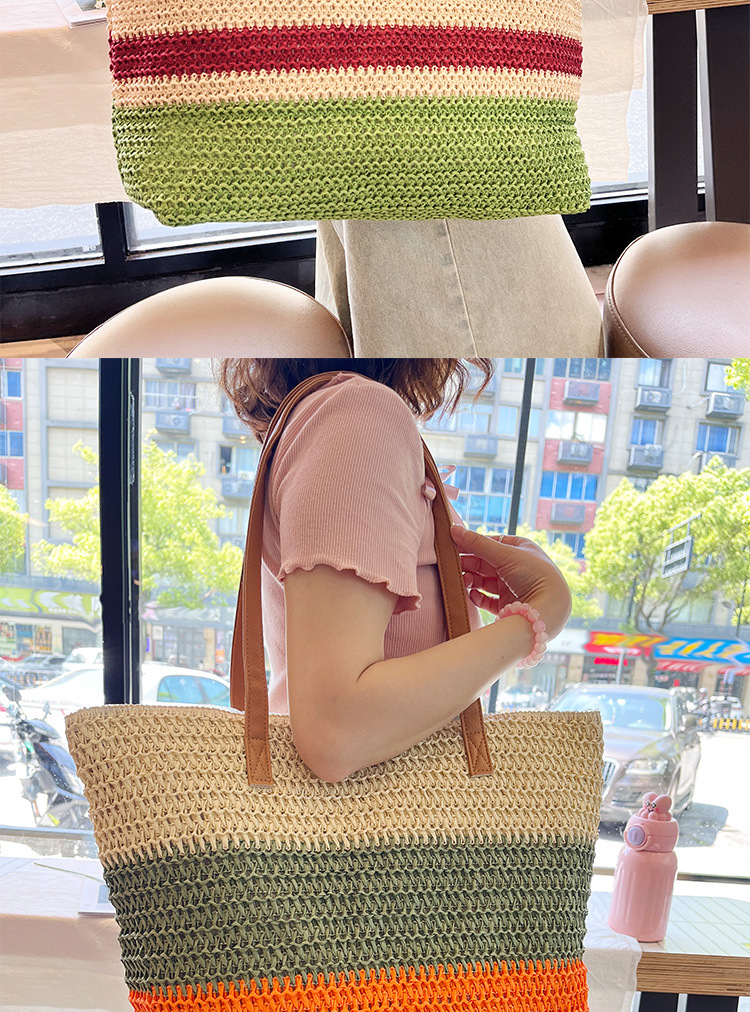 새로운 무지개 줄무늬 배색 수제 친환경 PP 종이 밀짚 가방 다용도 해변 휴가 비치백스토어 가기