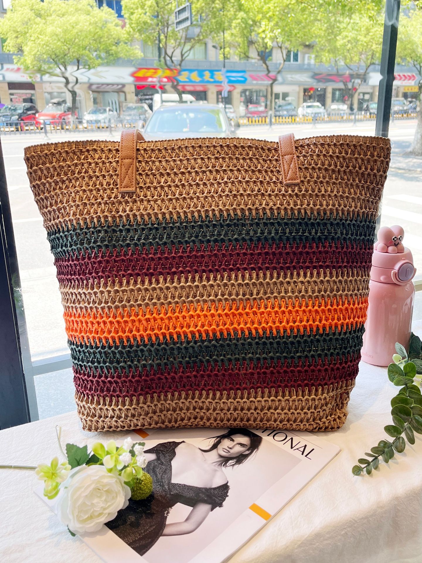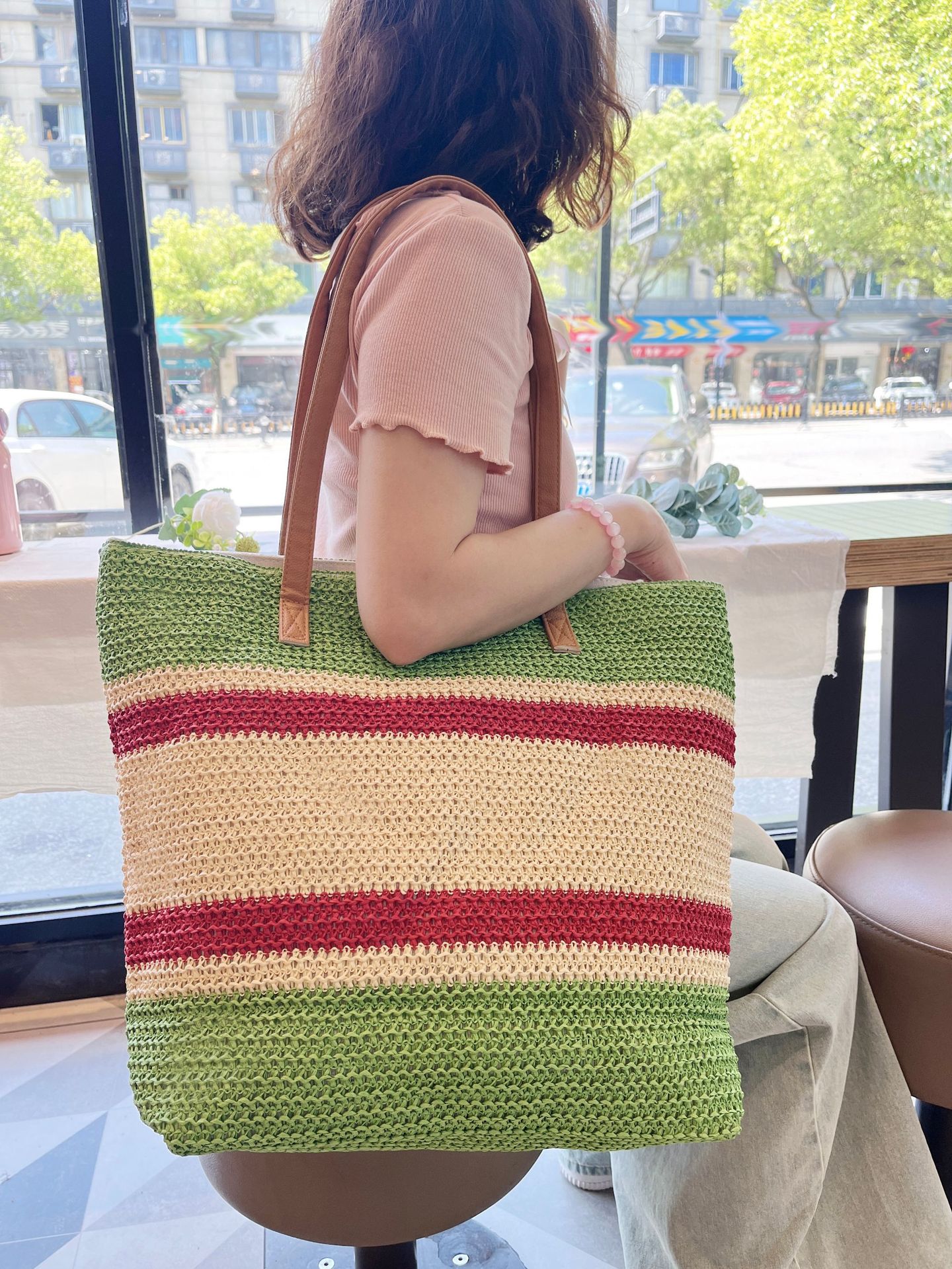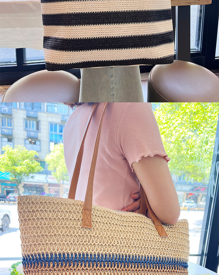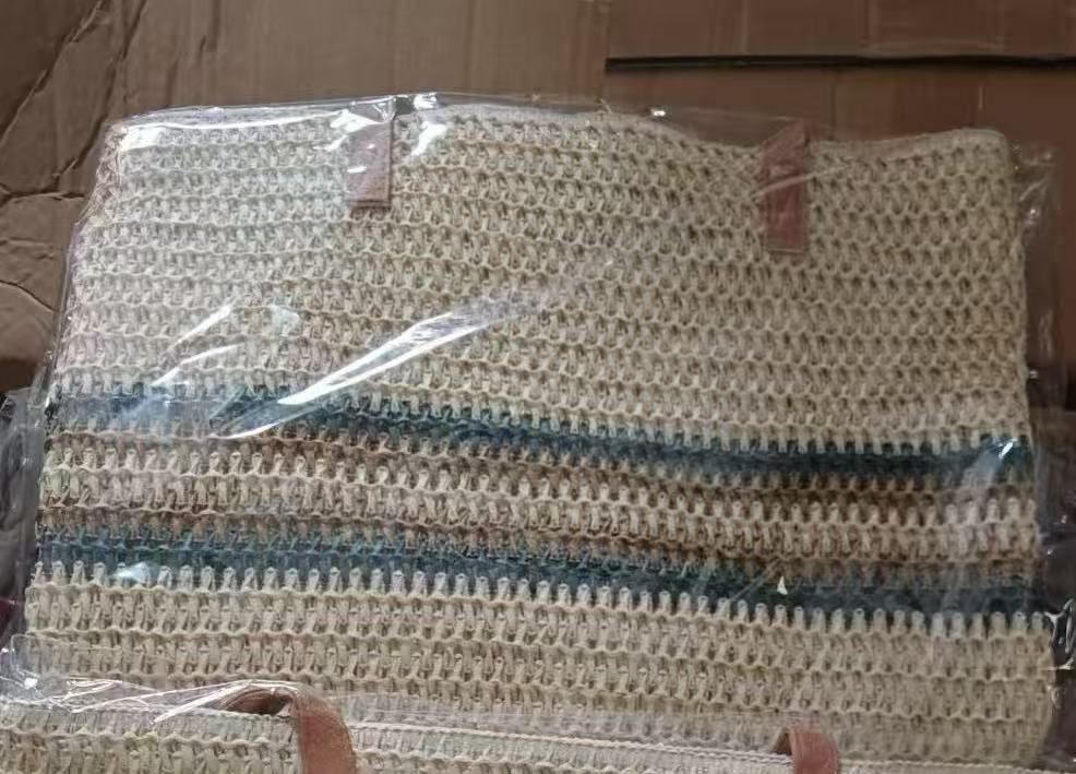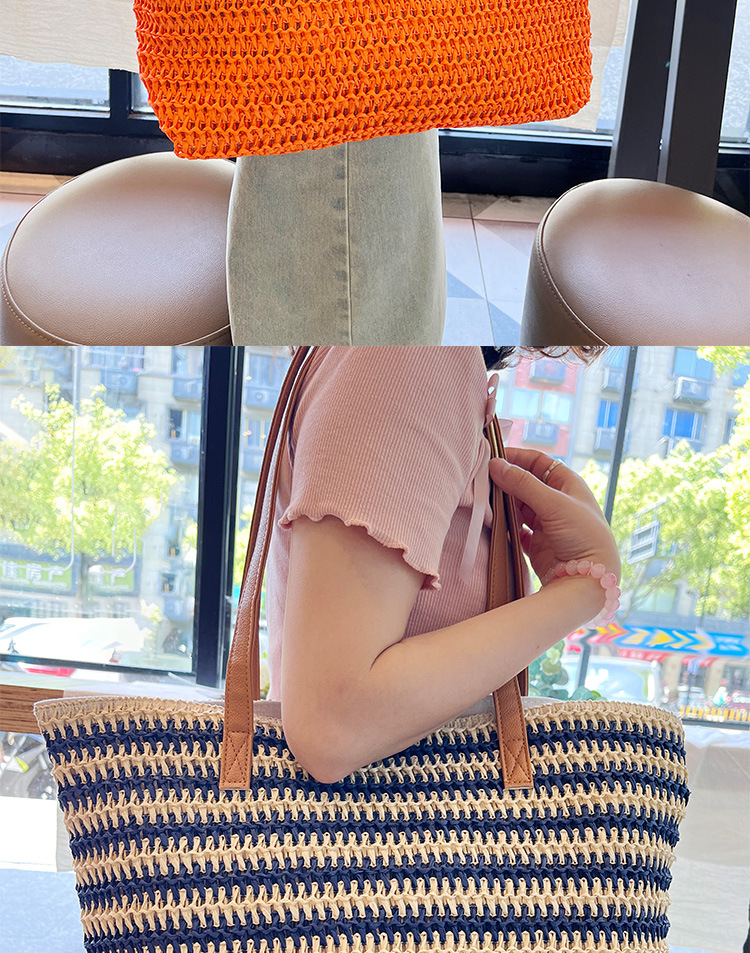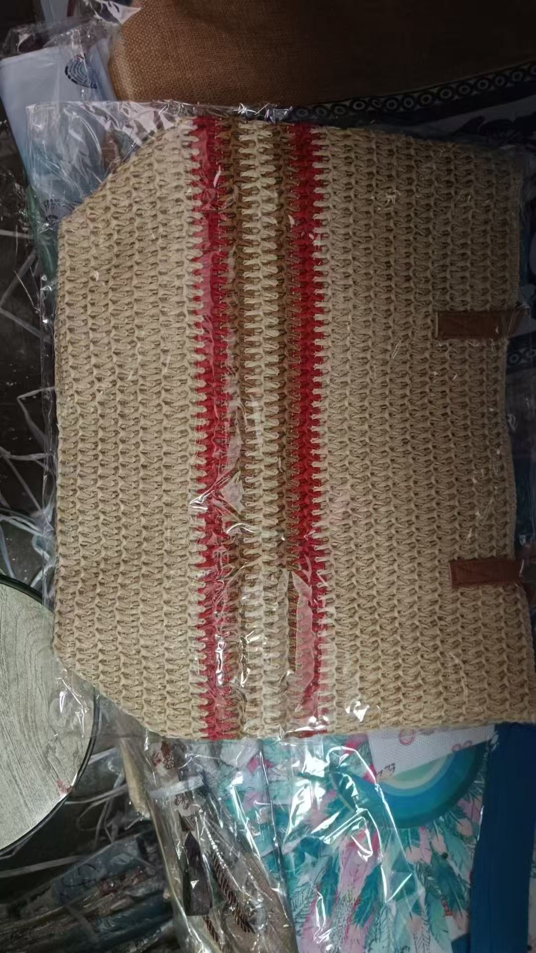 새로운 무지개 줄무늬 배색 수제 친환경 PP 종이 밀짚 가방 다용도 해변 휴가 비치백스토어 가기