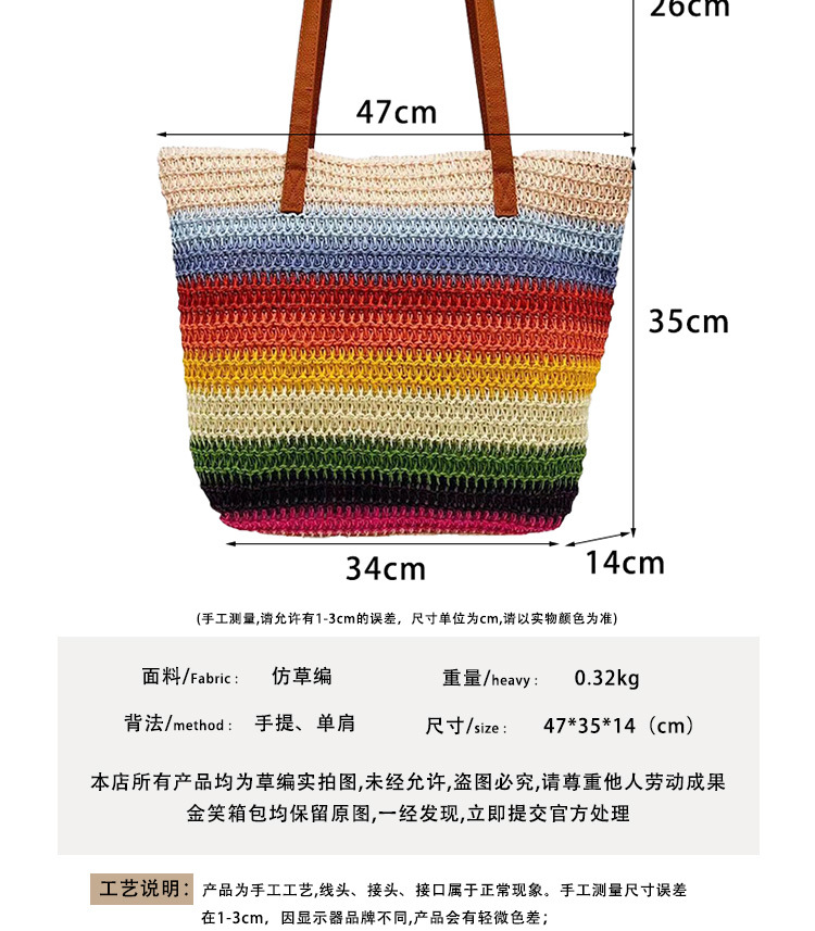 새로운 무지개 줄무늬 배색 수제 친환경 PP 종이 밀짚 가방 다용도 해변 휴가 비치백