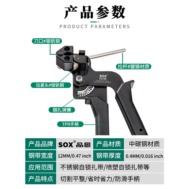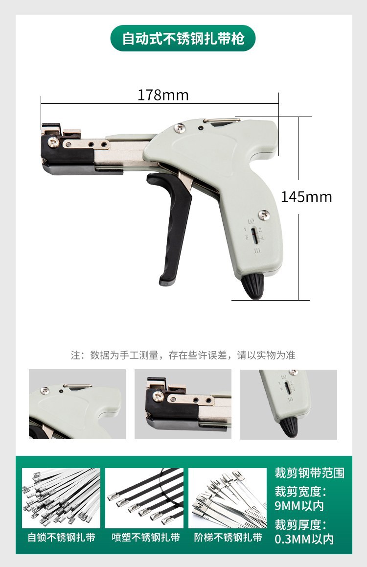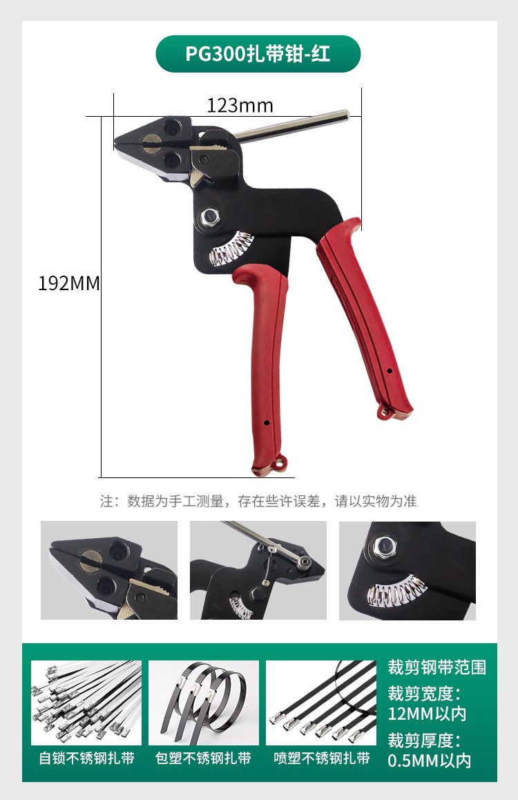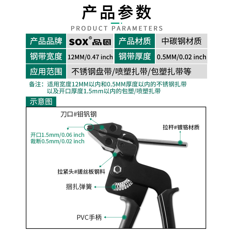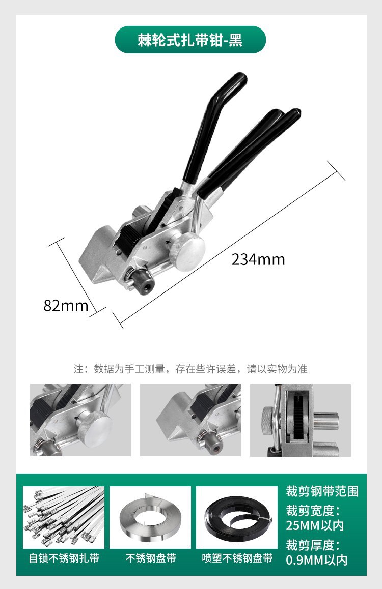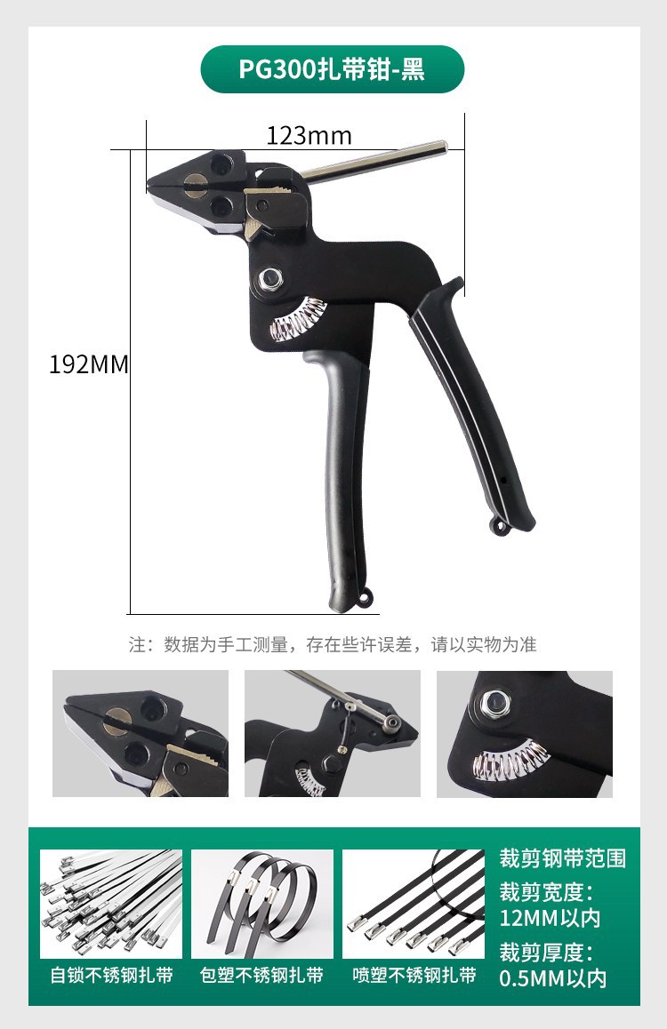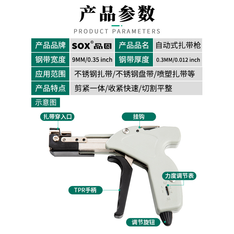【产品应用】 适用于不锈钢/尼龙扎带的紧固,收紧,切割