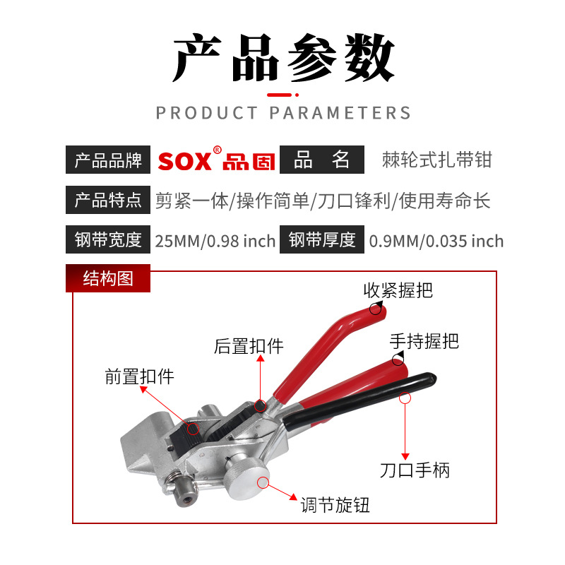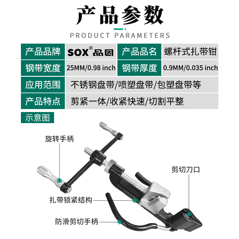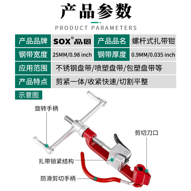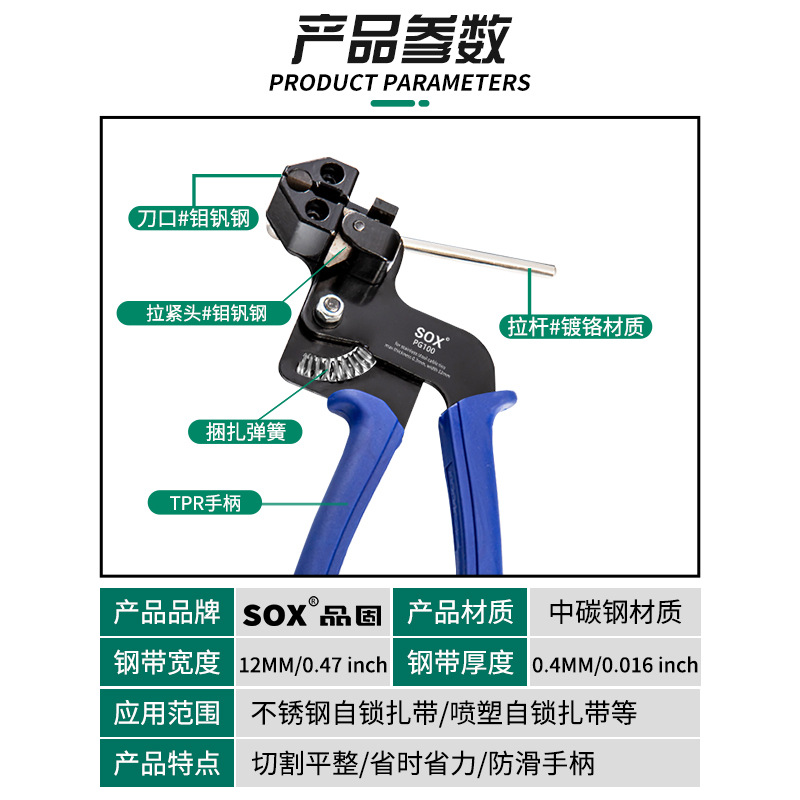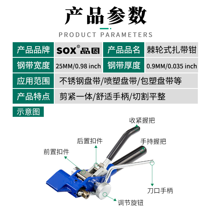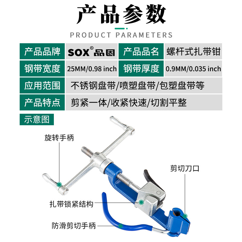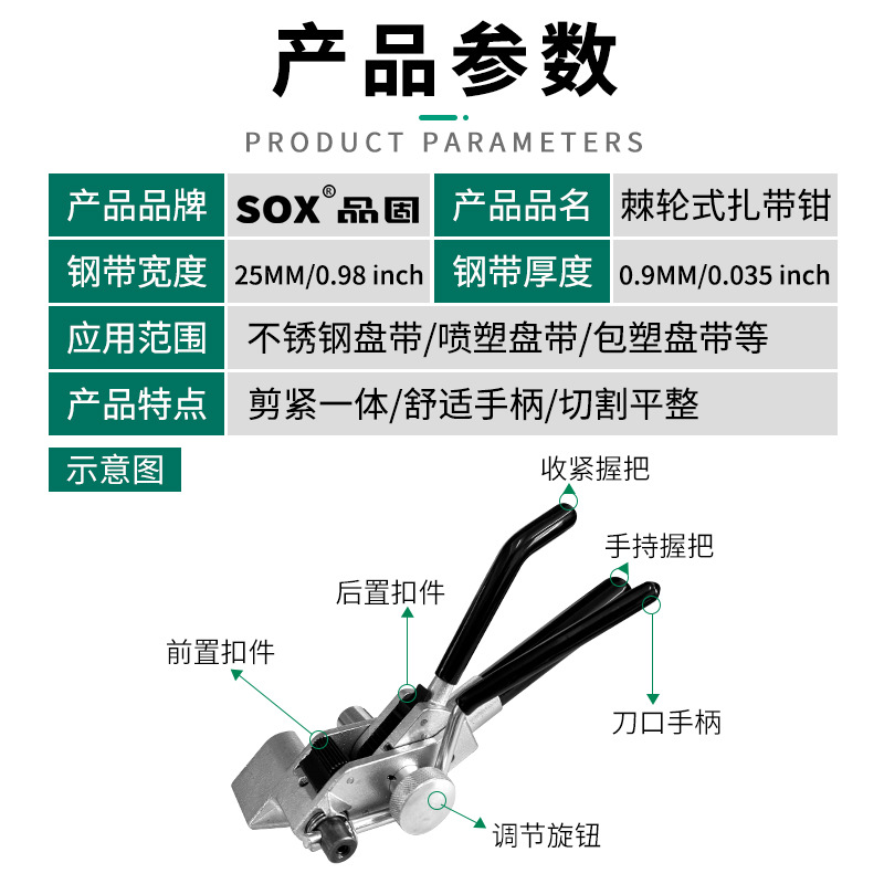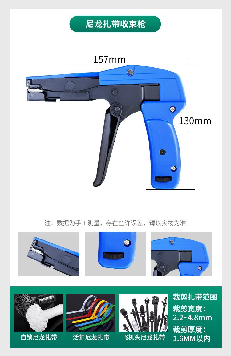 【产品应用】 适用于不锈钢/尼龙扎带的紧固,收紧,切割