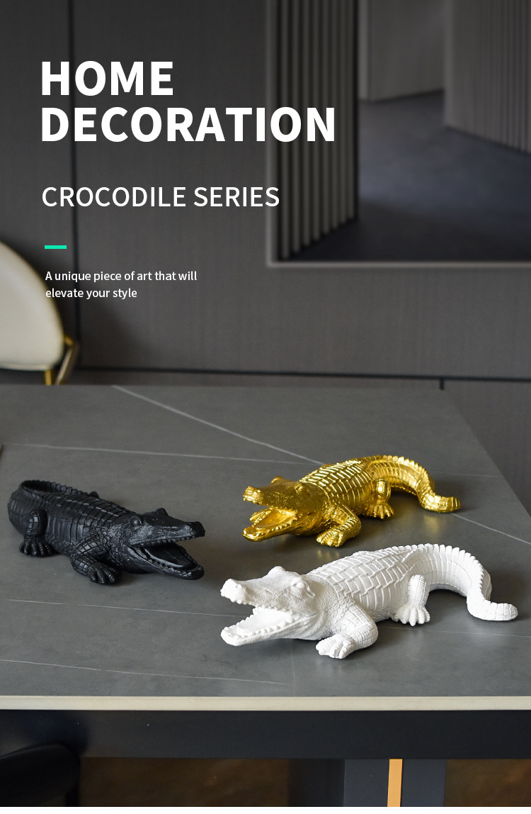 국경 간 시뮬레이션 악어 수지 공예 동상 장식품 사무실 거실 데스크탑 홈 장식 선물 장식품