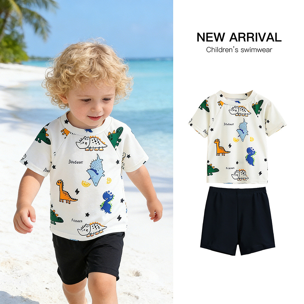 재고 어린이 수영복 소년 분할 소년 한국 만화 공룡 아기 소년 여름 수영 세트 머리 세대