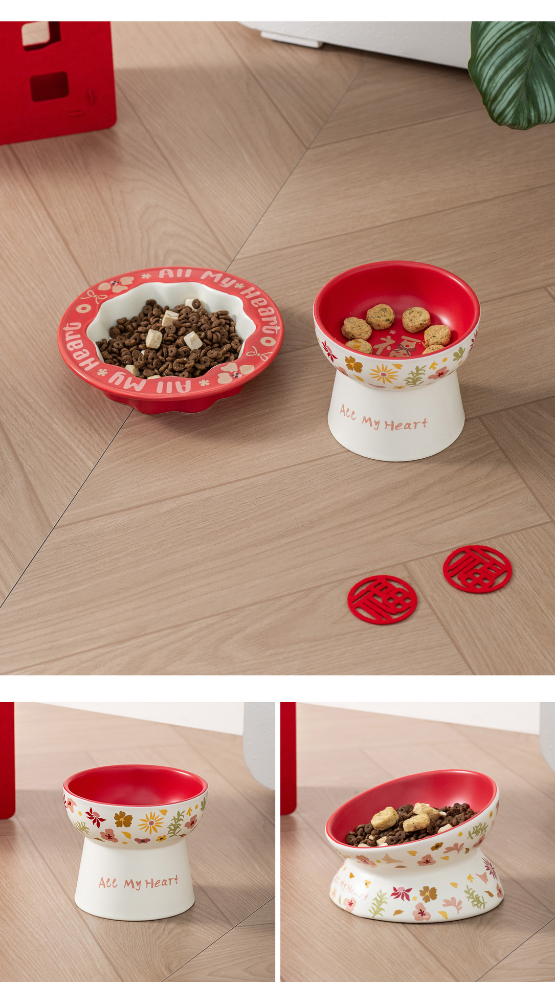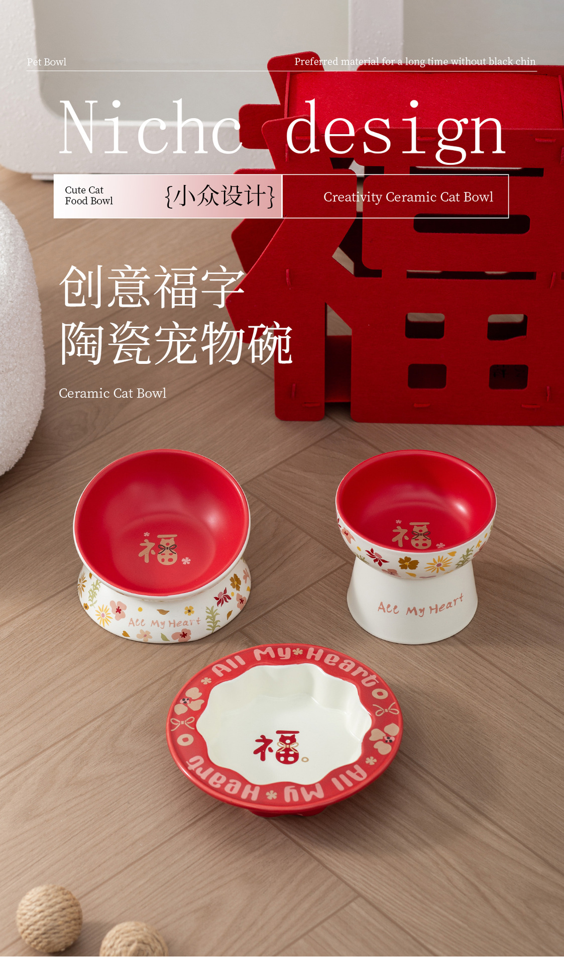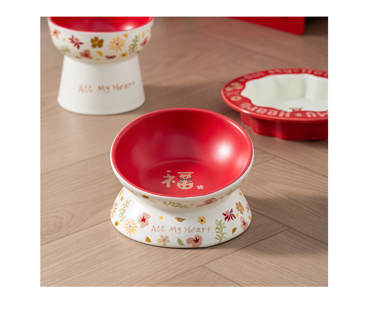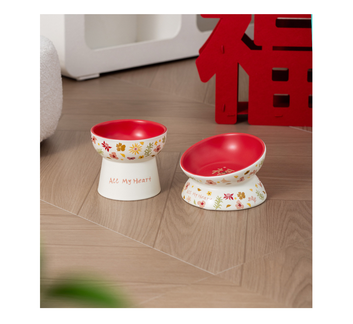 푸 레이스 고양이 그릇 안티 블랙 턱 통조림 고양이 그릇 세라믹 개 음식 그릇 고양이 안티 노크 워터 볼 애완 동물