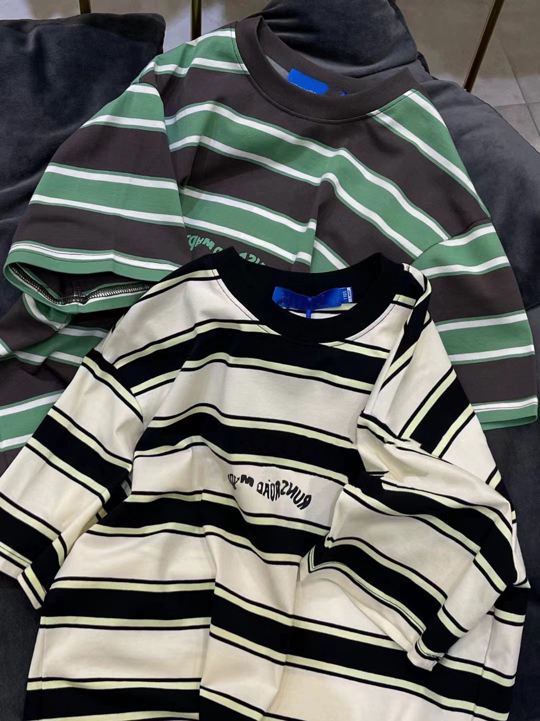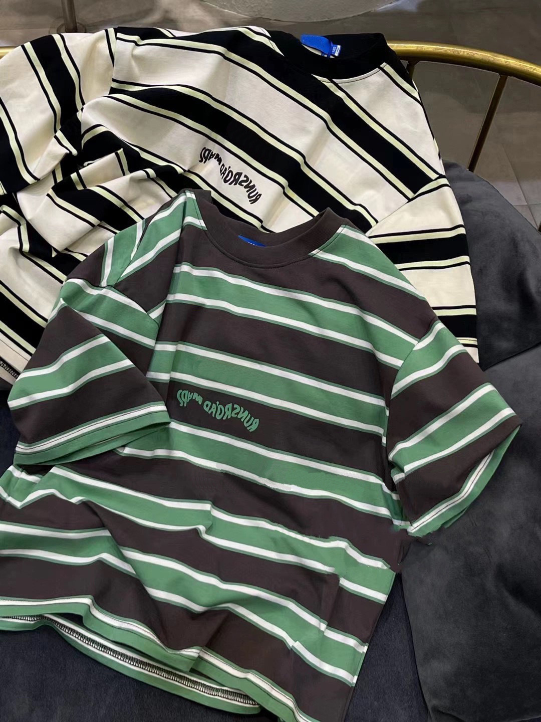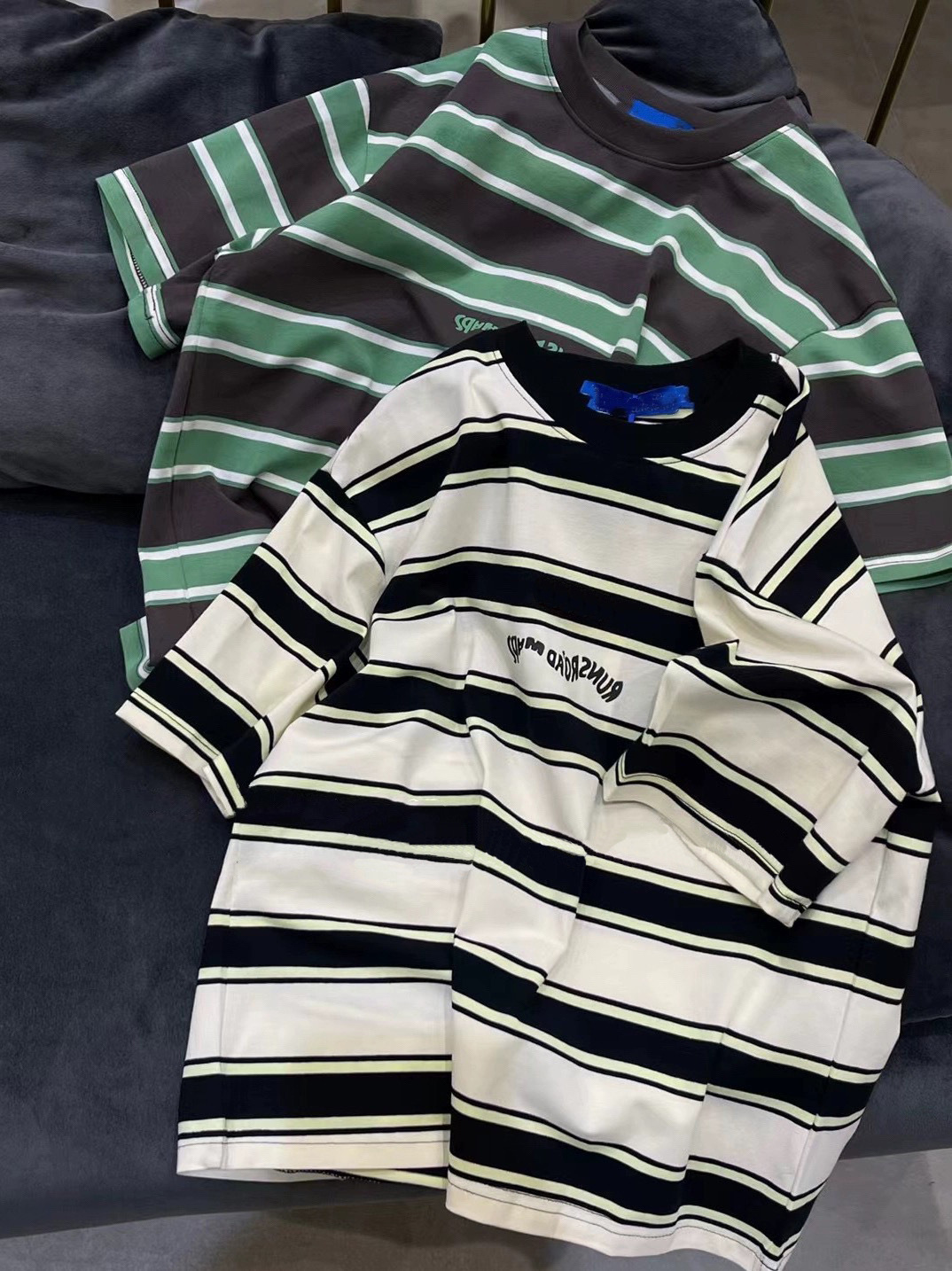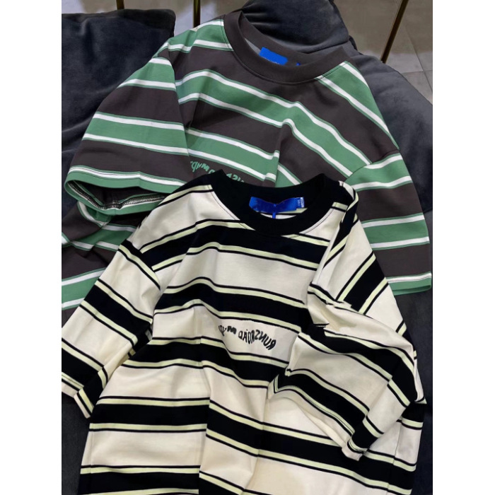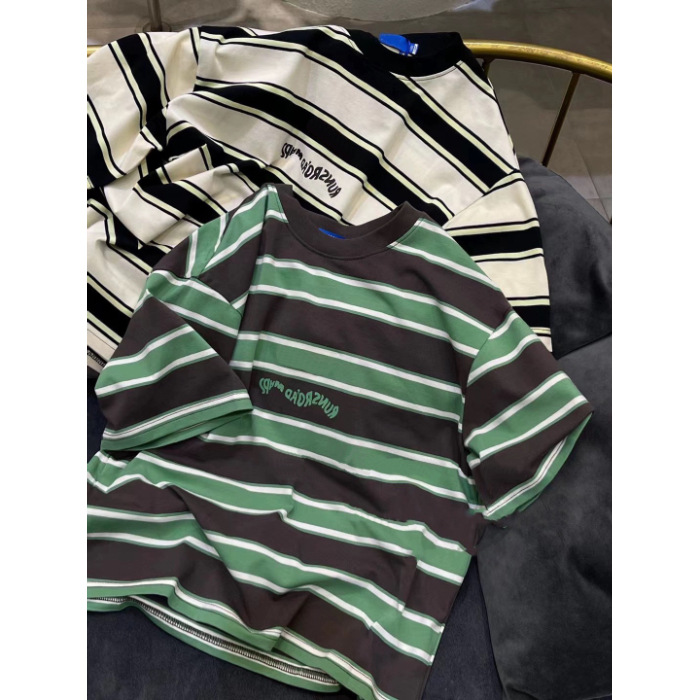 남학생 코튼 스트라이프 반팔 티셔츠 2024 한국식 여름 새 스타일 트렌디 터틀넥 탑스토어 가기