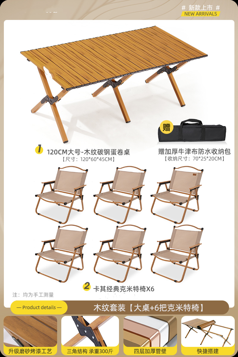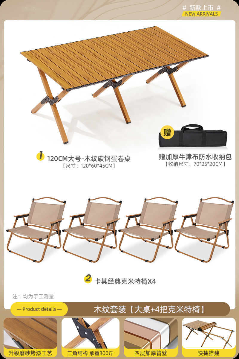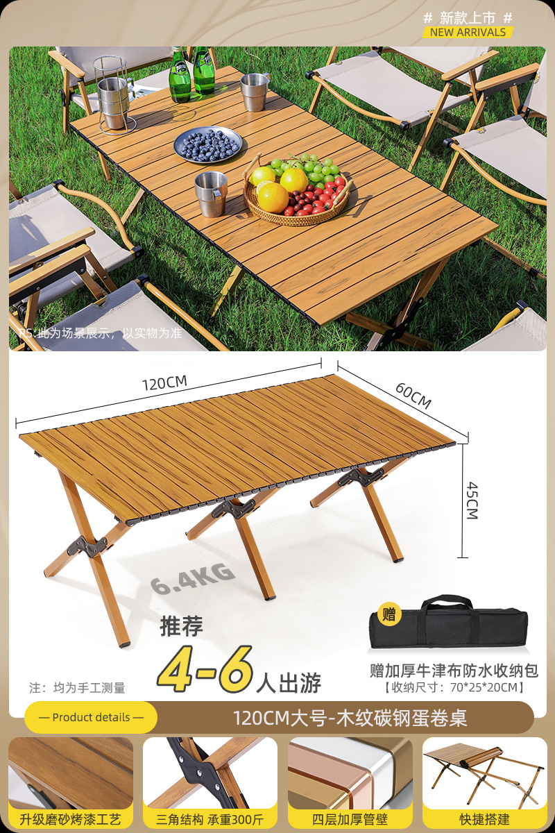 • 120cm 탄소 합금 나뭇결 테이블 큰 Kermit_4 [카키]