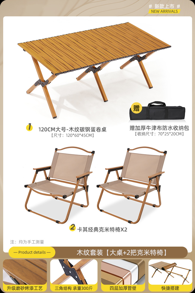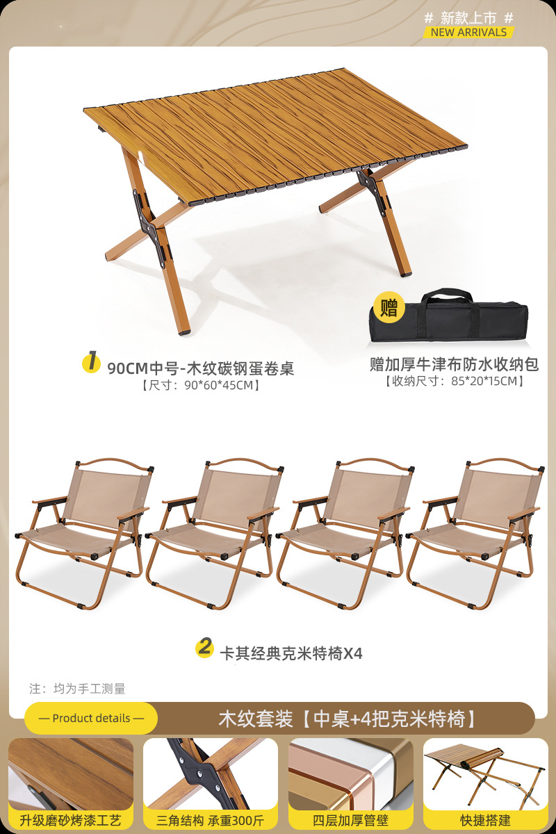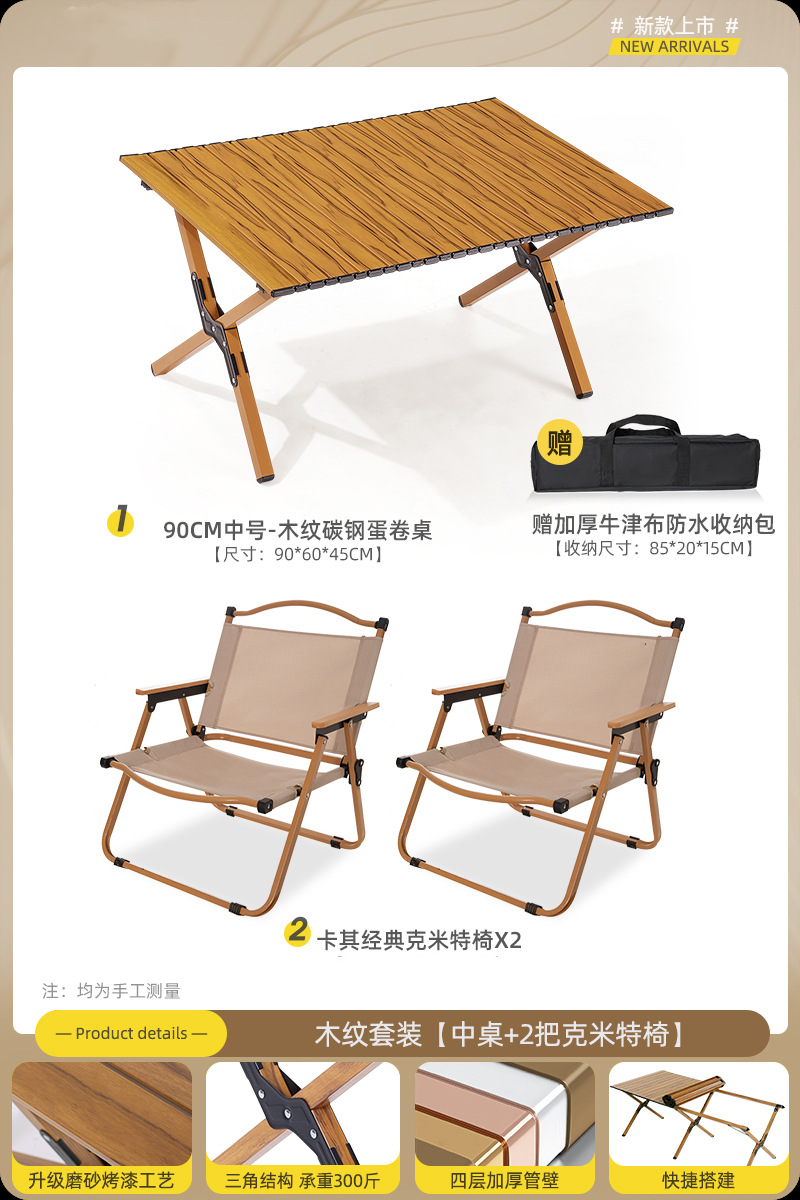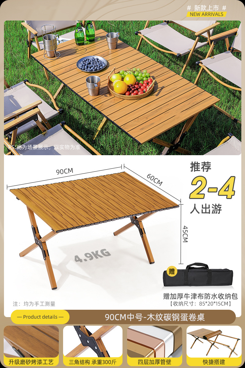 • 90cm 탄소 합금 나뭇결 테이블 큰 Kermit_4 [카키]