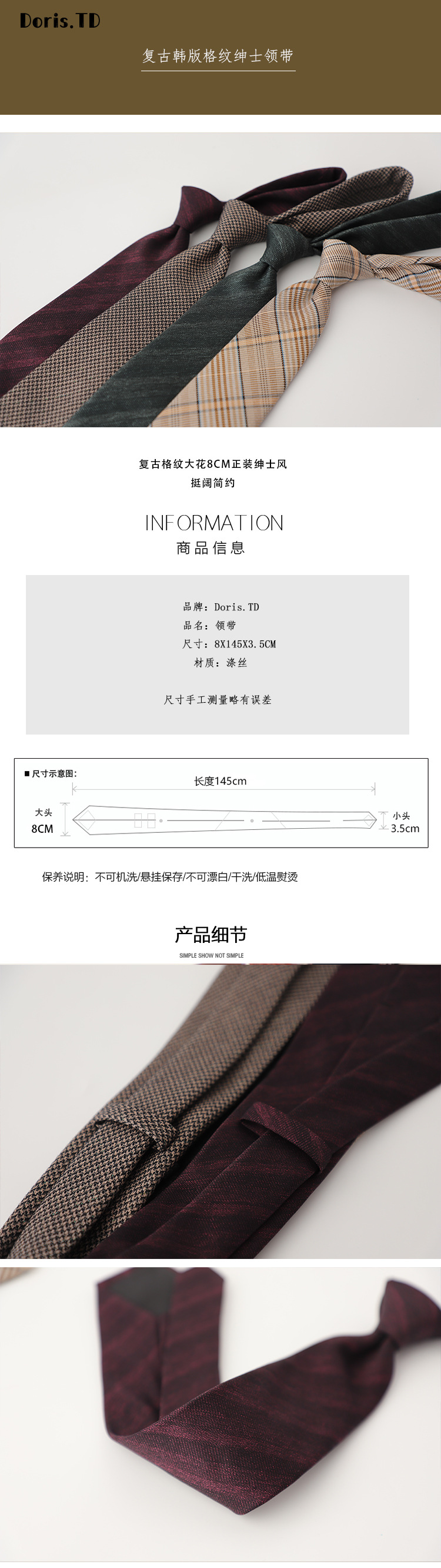 공장 재고 도매 질감 좋은 격자 무늬 줄무늬 손 전문 원피스 넥타이 남성 신사 작업 한국어 버전스토어 가기