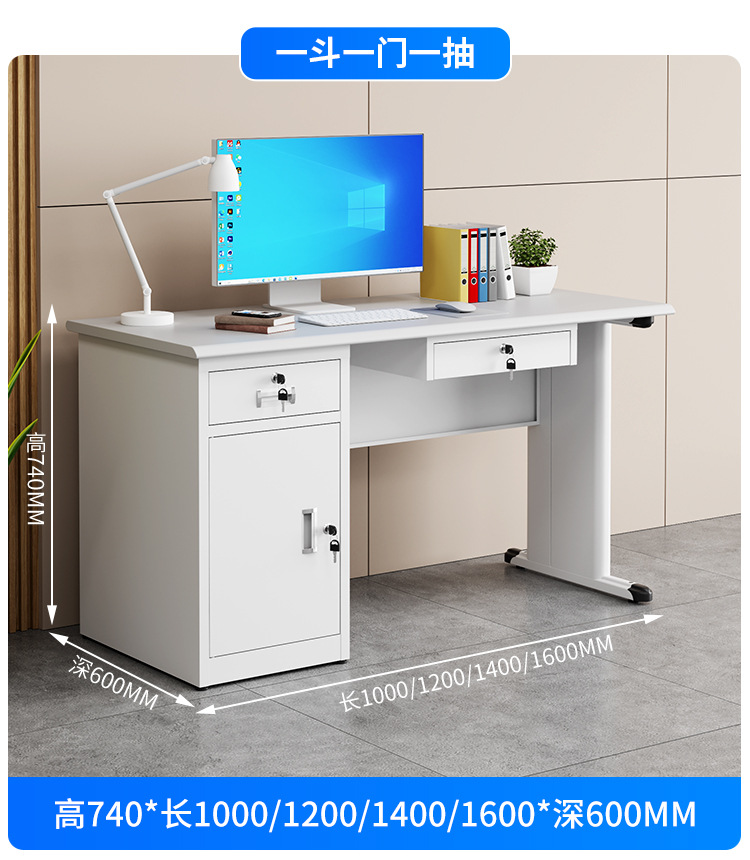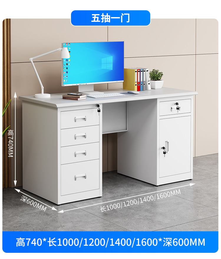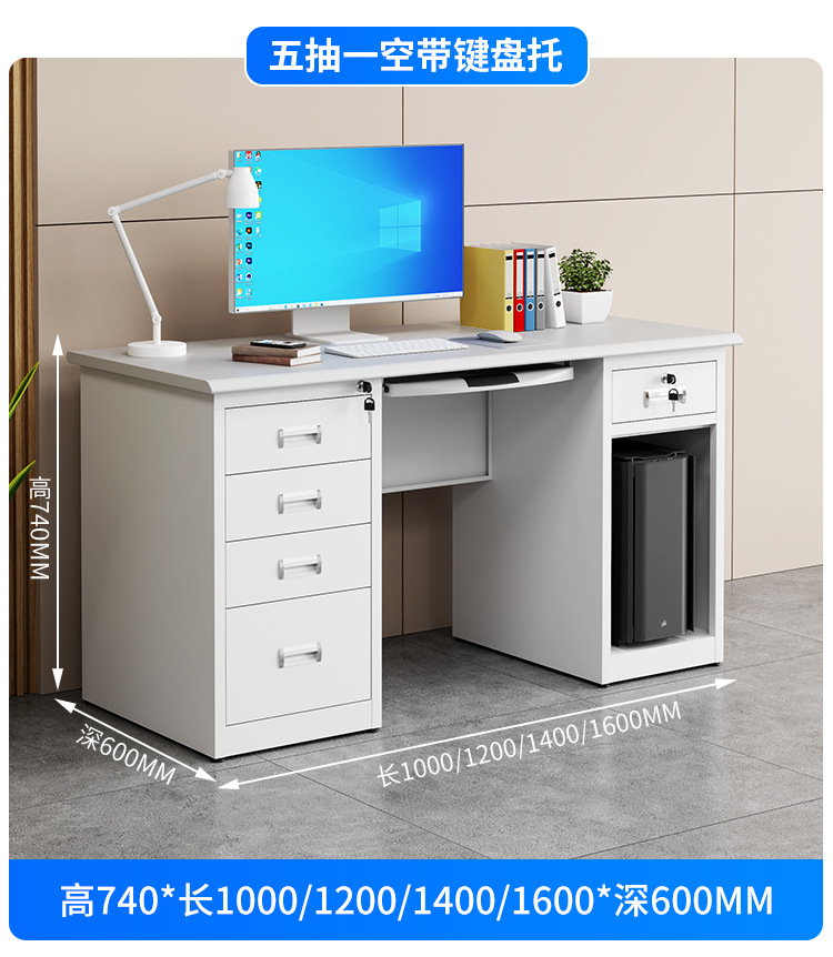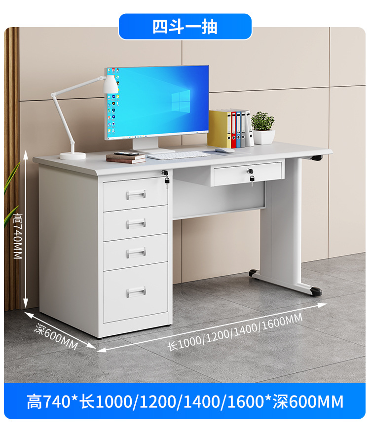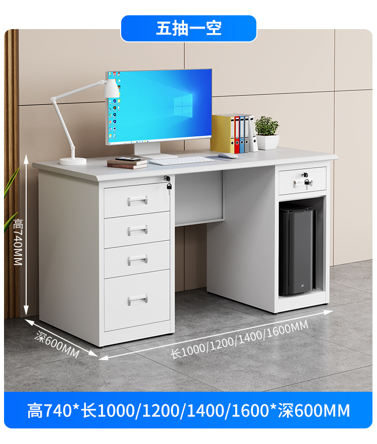 钢制办公桌写字桌办公室带抽电脑桌职工财务工作桌铁皮工作台厂家