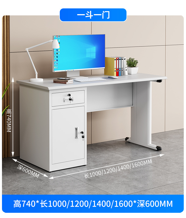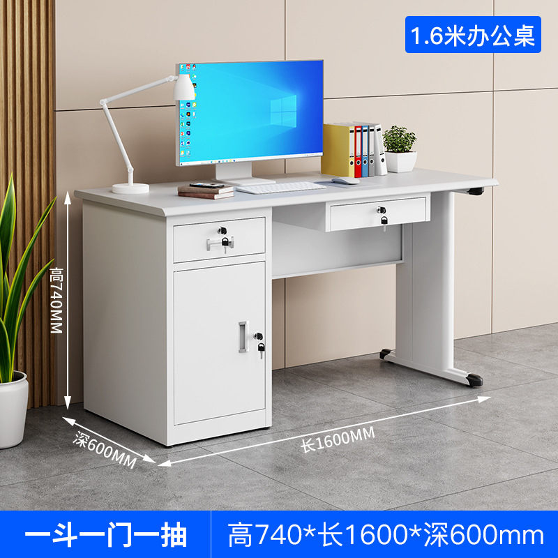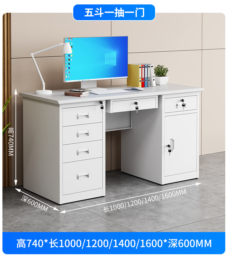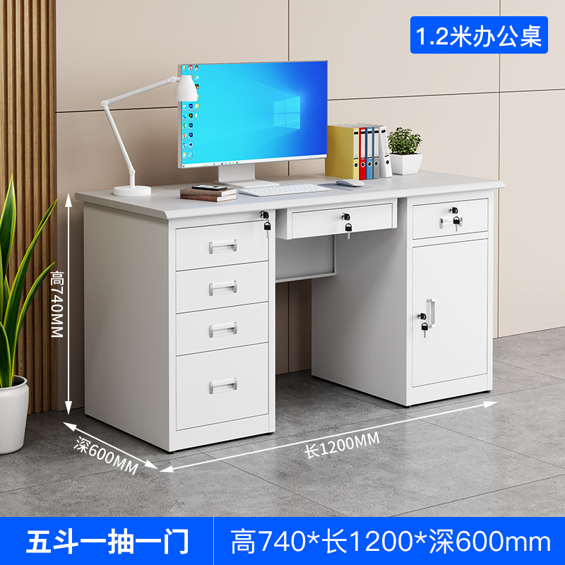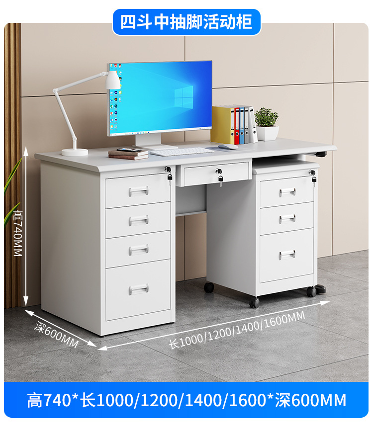 钢制办公桌写字桌办公室带抽电脑桌职工财务工作桌铁皮工作台厂家