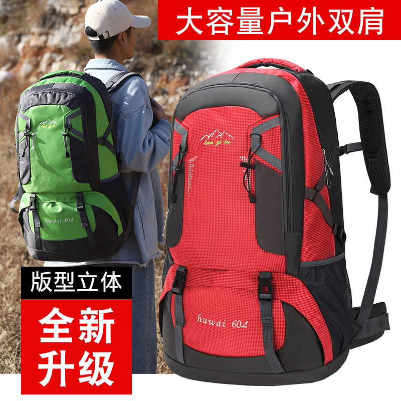 60L 대용량 야외 등산 가방 나일론 여행 가방 커플 어깨 캐주얼 남성과 여성의 스포츠 프린트 로고 배낭스토어 가기