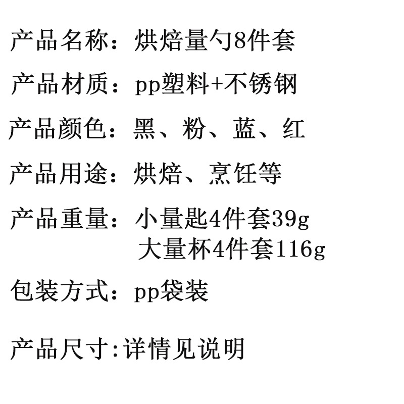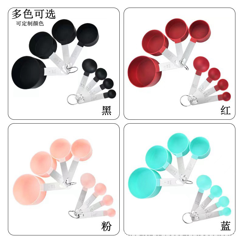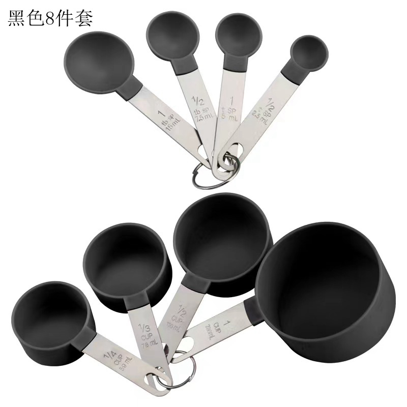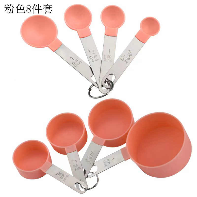 주방 스테인레스 스틸 핸들 측정 컵 측정 숟가락 8 피스 세트 측정 숟가락 측정 스푼 플라스틱 측정 컵 스푼 세트