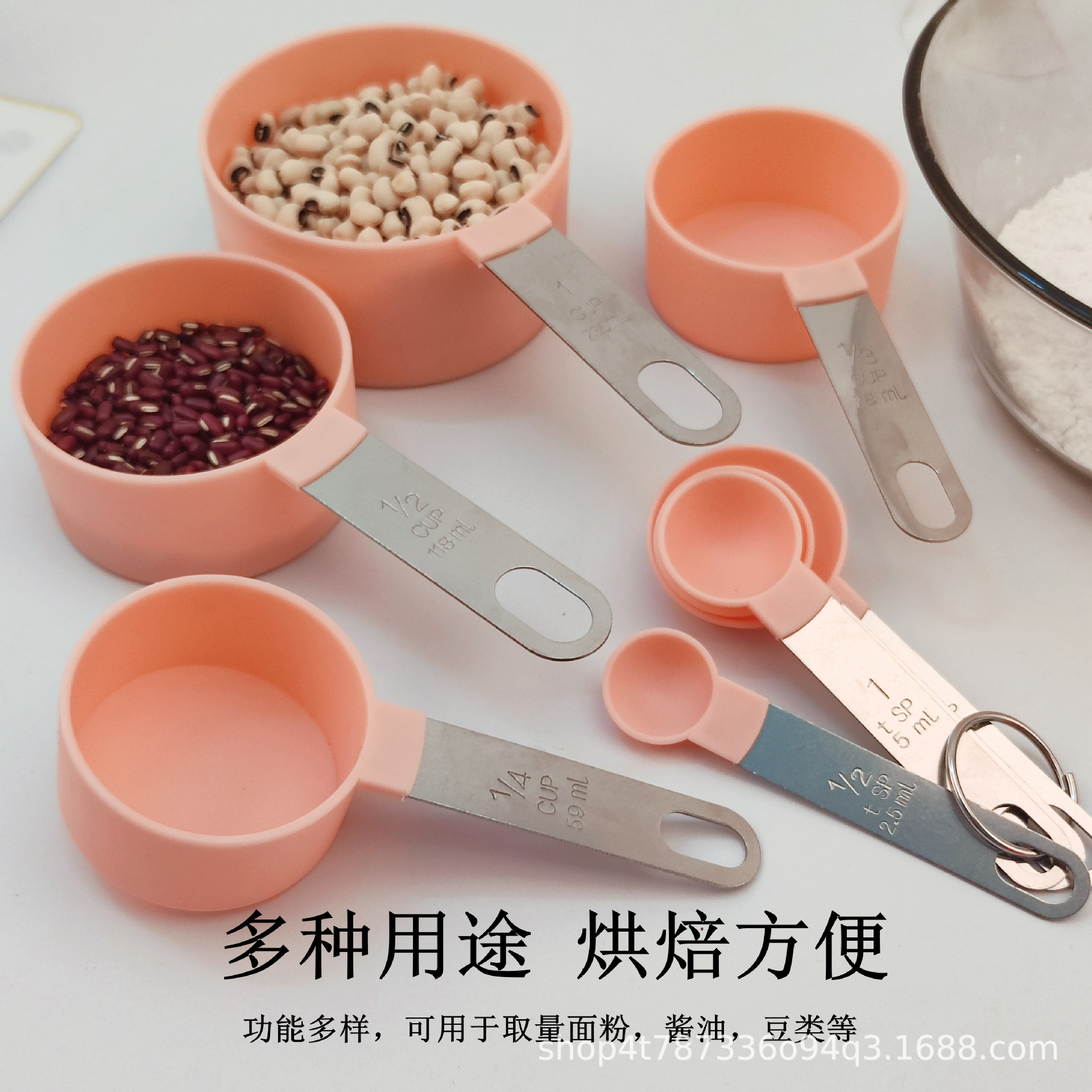 주방 스테인레스 스틸 핸들 측정 컵 측정 숟가락 8 피스 세트 측정 숟가락 측정 스푼 플라스틱 측정 컵 스푼 세트스토어 가기