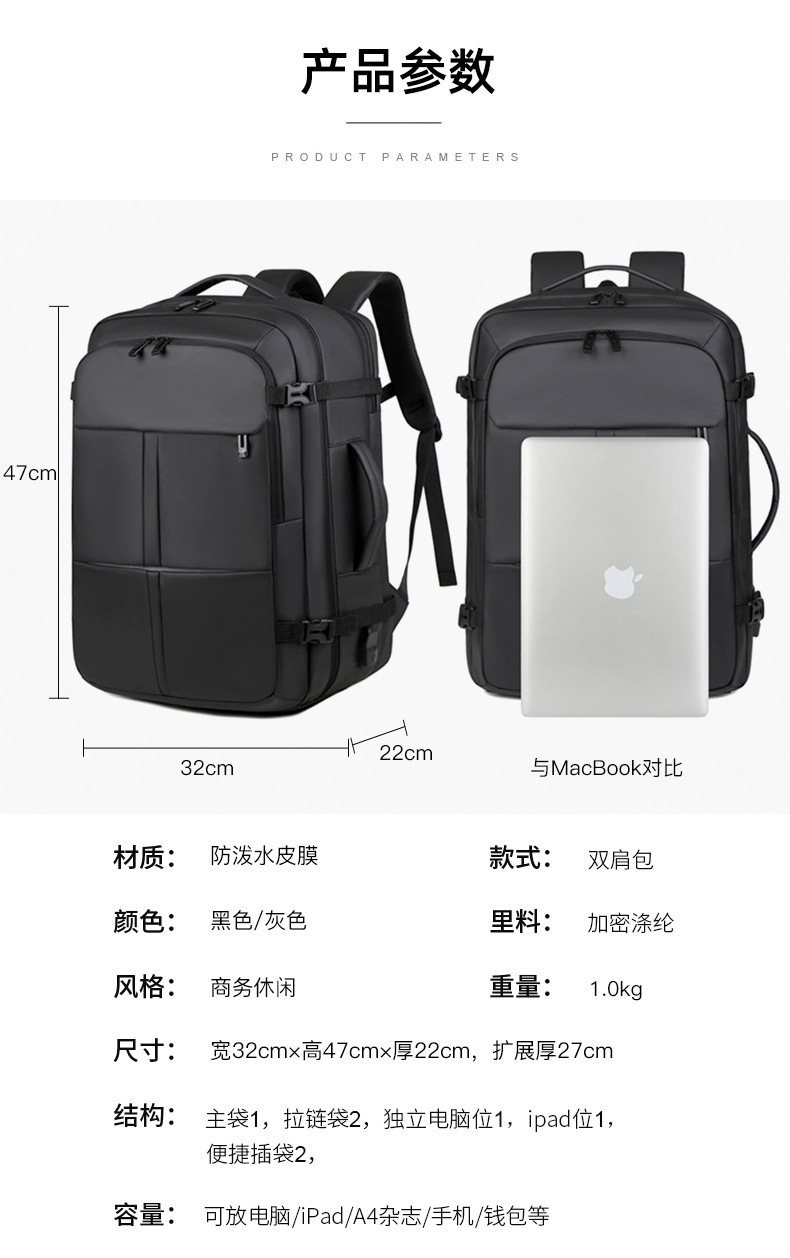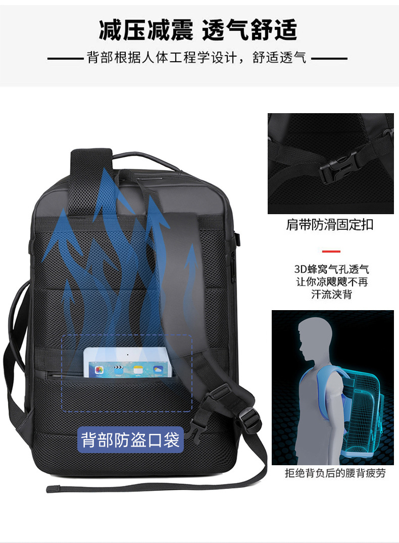 비즈니스 여행 방수 신발 창고 신발 건조하고 젖은 분리 확장 확장 충전 반사 대용량 컴퓨터 배낭스토어 가기