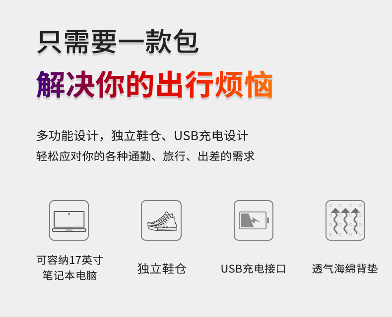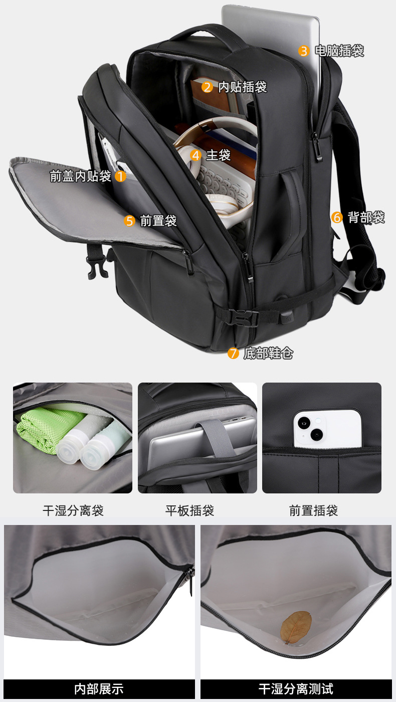 비즈니스 여행 방수 신발 창고 신발 건조하고 젖은 분리 확장 확장 충전 반사 대용량 컴퓨터 배낭
