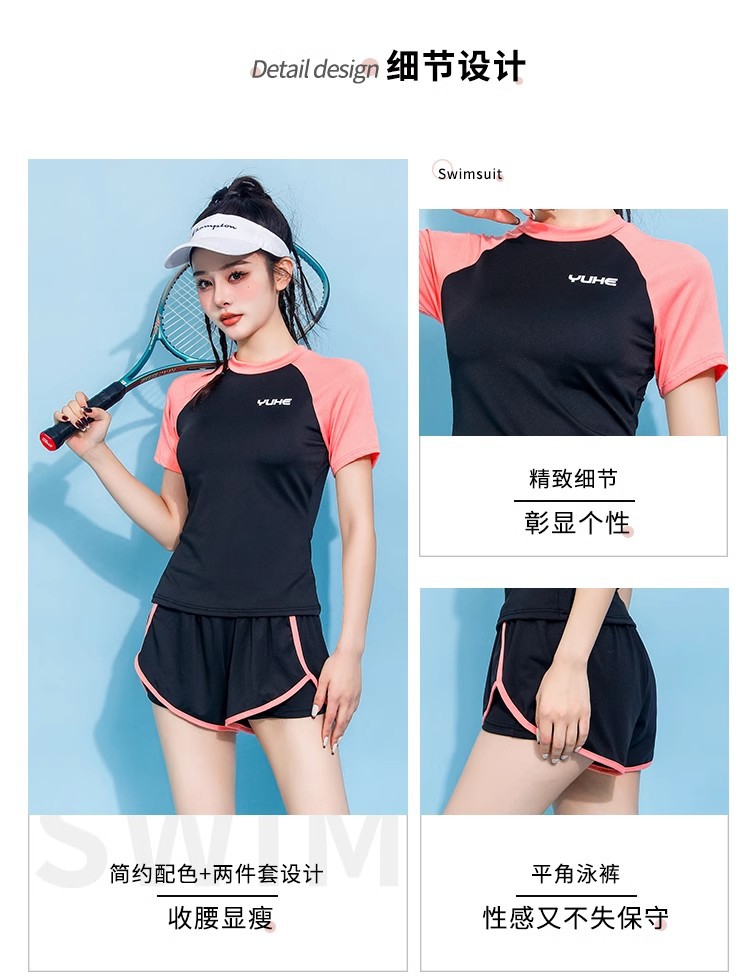 2026년 신상 여성 수영복 투피스 세트, 큰 사이즈, 학생 수영 수업용, 스포티한 스타일, 슬리밍 효과, 온천 수영복스토어 가기