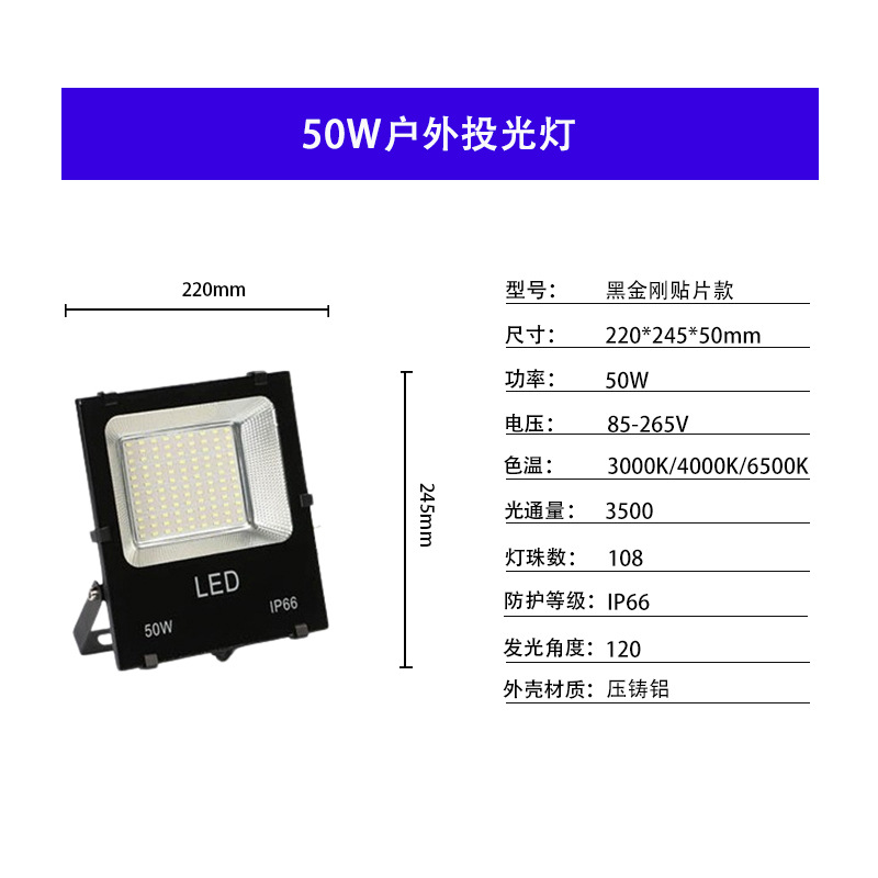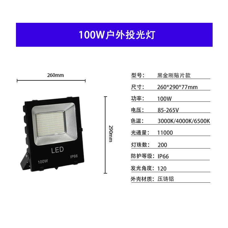Led 홍수 빛 야외 방수 100W 높은 전력 엔지니어링 조명 투광 조명 안뜰 빌보드 프로젝션 라이트스토어 가기