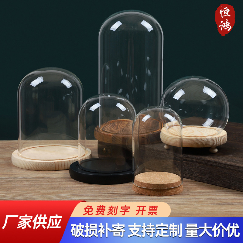 영구꽃 유리 덮개 디스플레이 박스 투명 방진 커버 블록 크리스마스 트리 드라이플라워 피규어 유리 커버