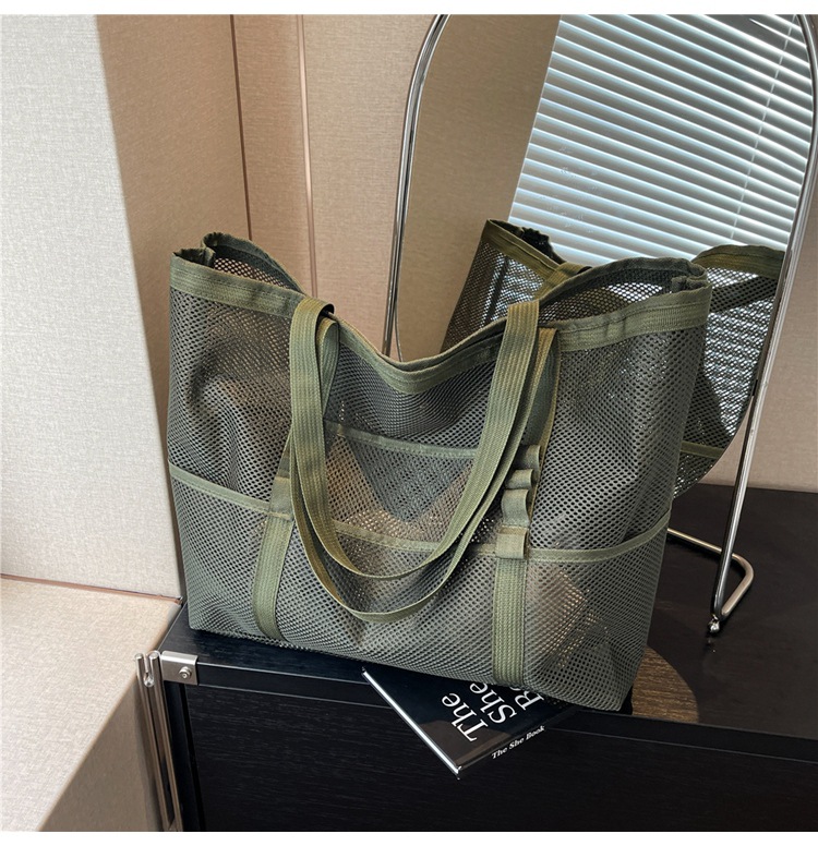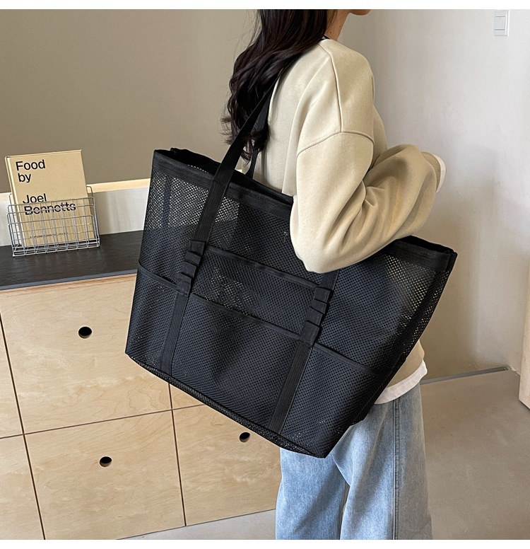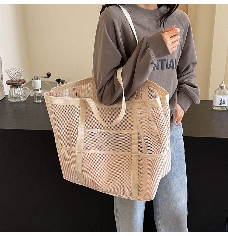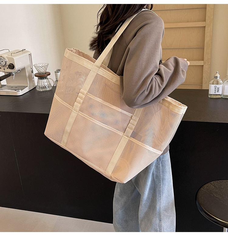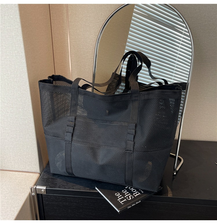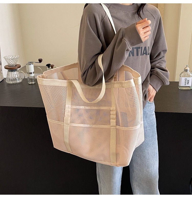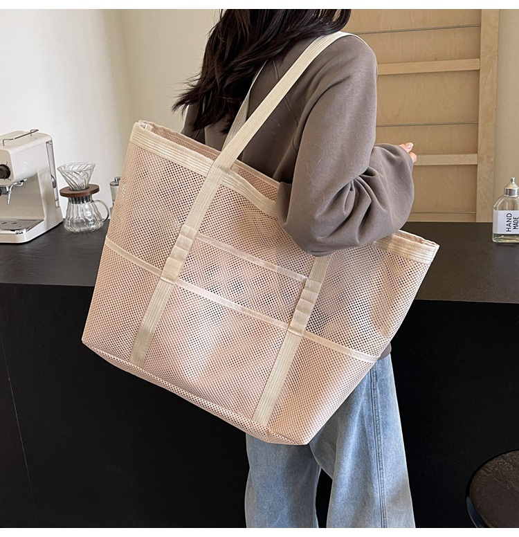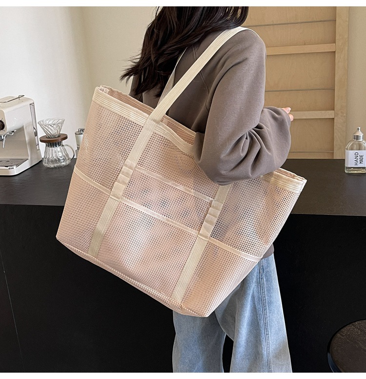 메쉬 캐주얼 토트백 대용량 핸드헬드 숄더백 메쉬 비치백 여름 신상 오픈형 겨드랑이백 여성용