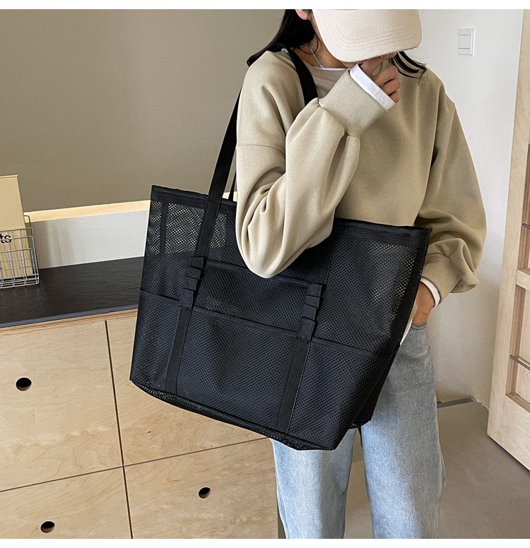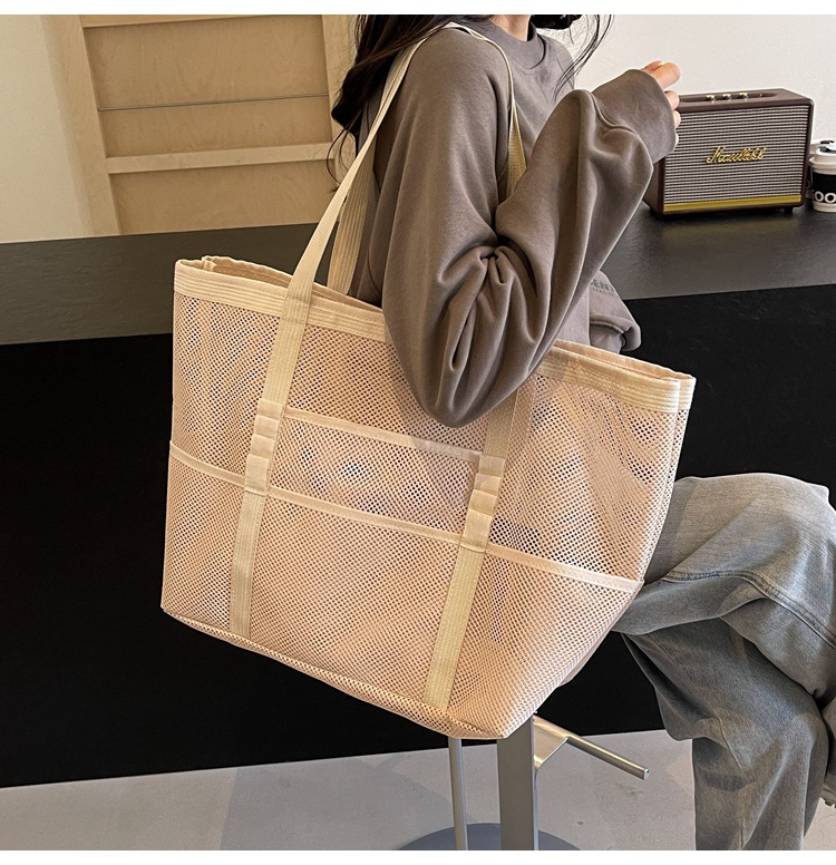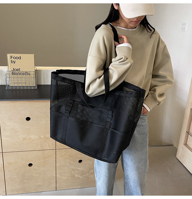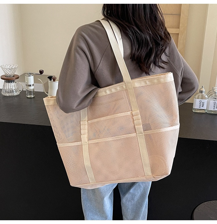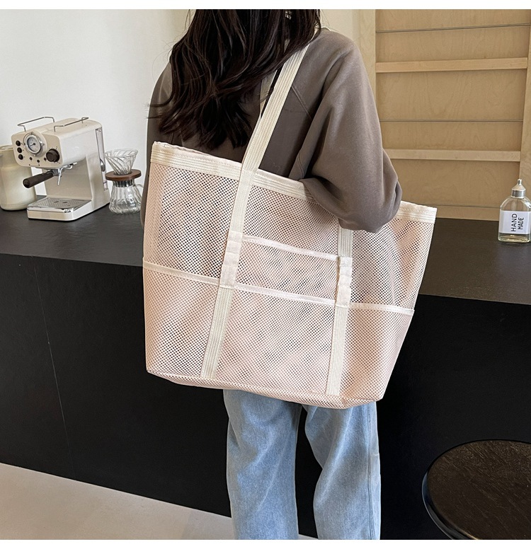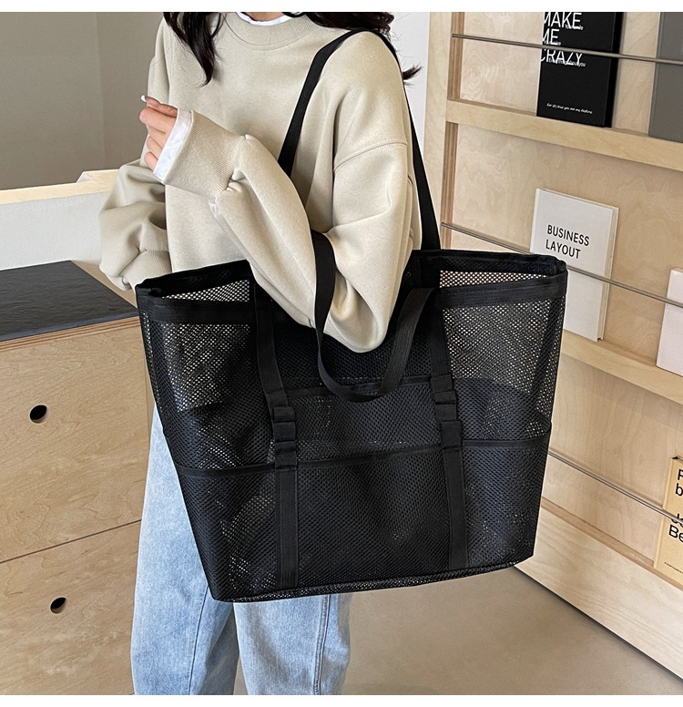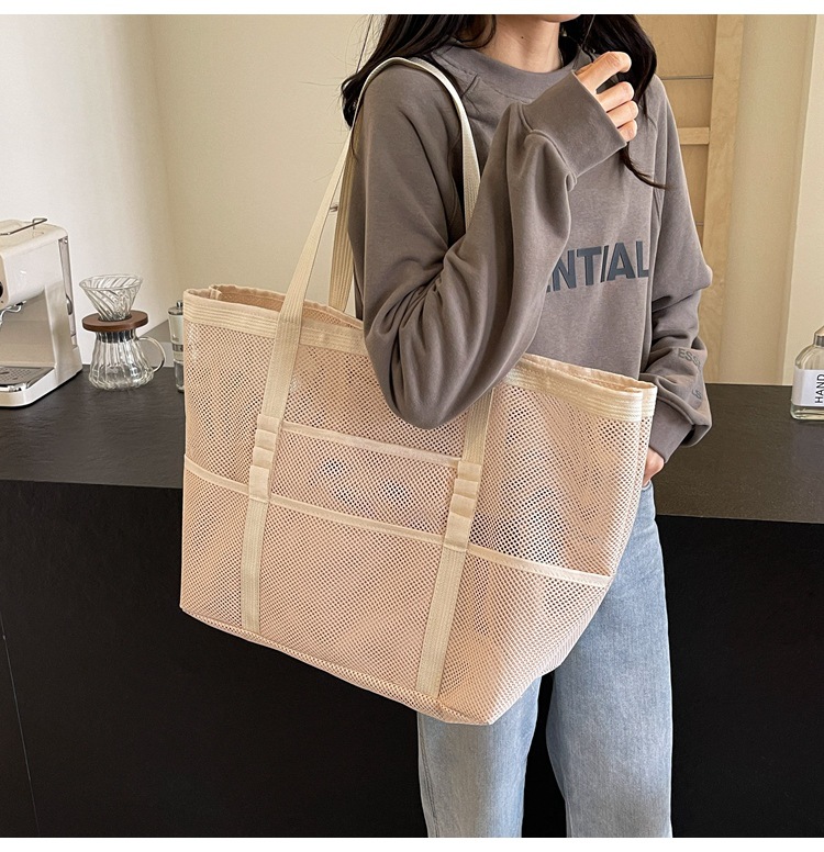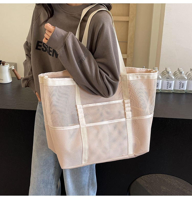 메쉬 캐주얼 토트백 대용량 핸드헬드 숄더백 메쉬 비치백 여름 신상 오픈형 겨드랑이백 여성용