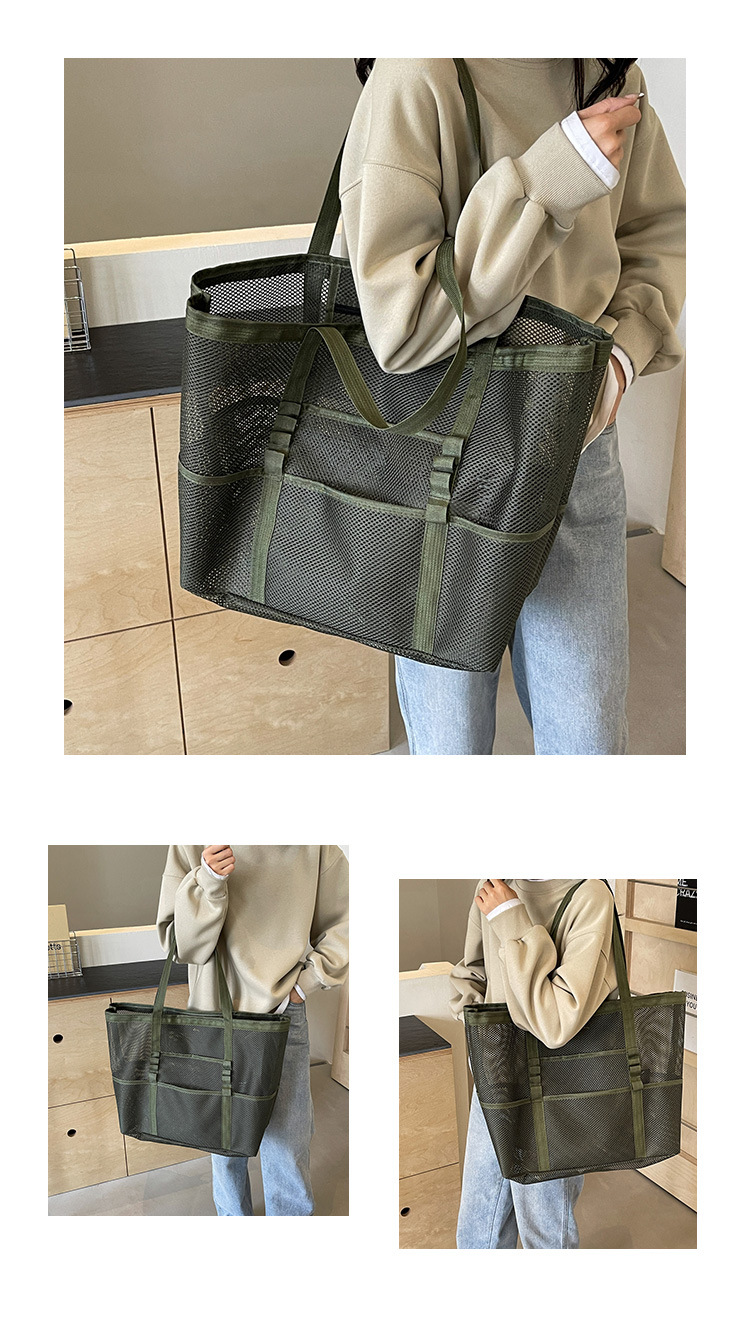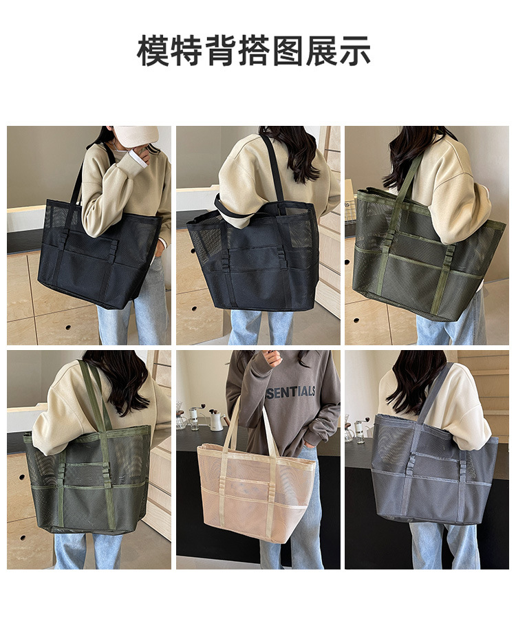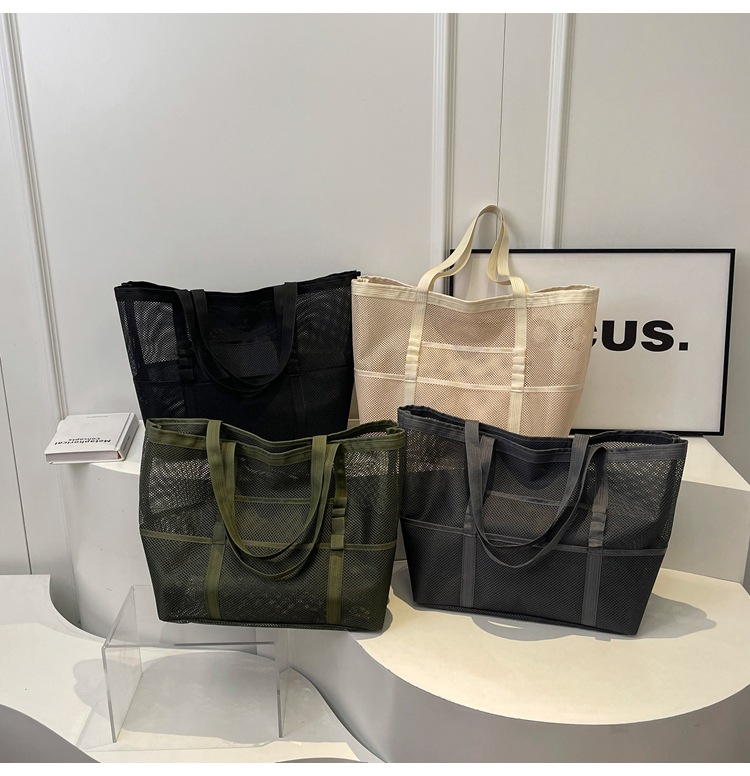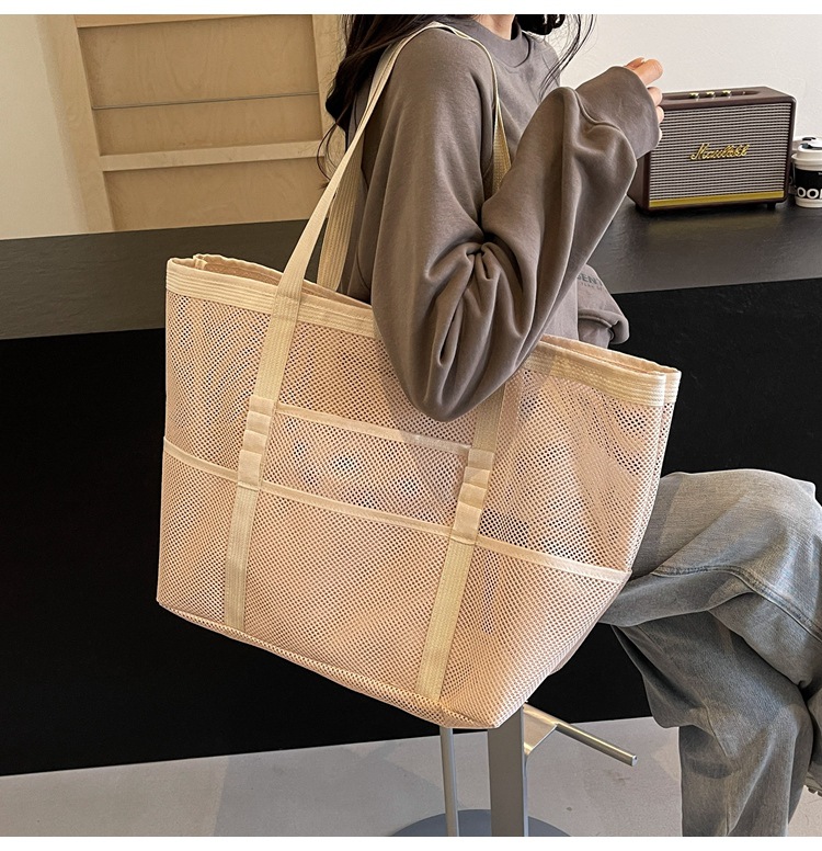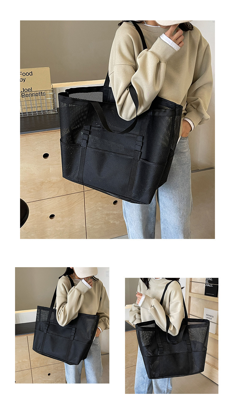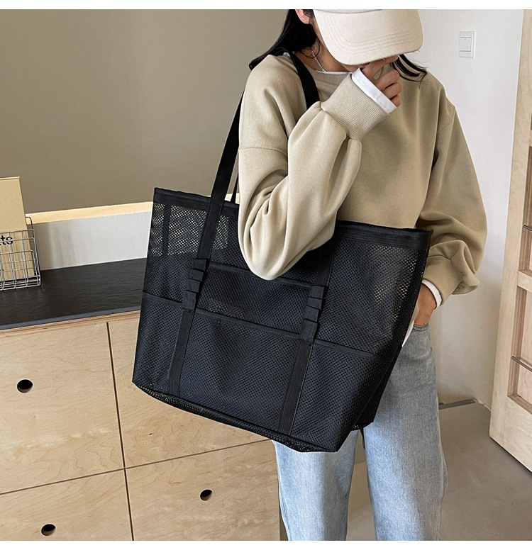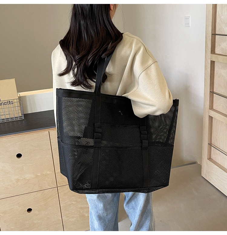 메쉬 캐주얼 토트백 대용량 핸드헬드 숄더백 메쉬 비치백 여름 신상 오픈형 겨드랑이백 여성용