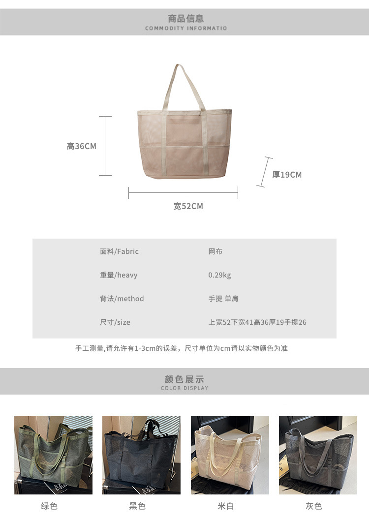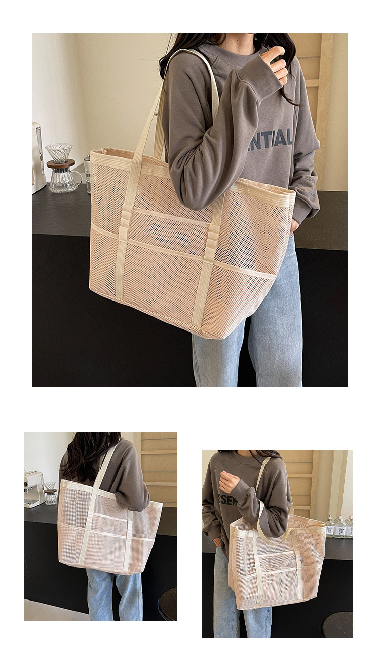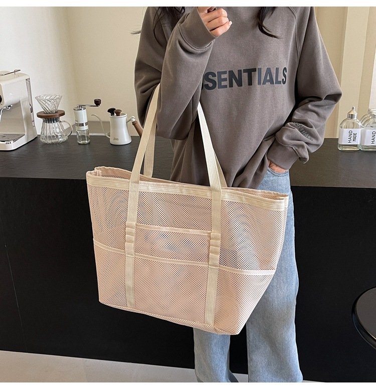 메쉬 캐주얼 토트백 대용량 핸드헬드 숄더백 메쉬 비치백 여름 신상 오픈형 겨드랑이백 여성용스토어 가기