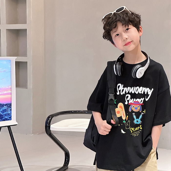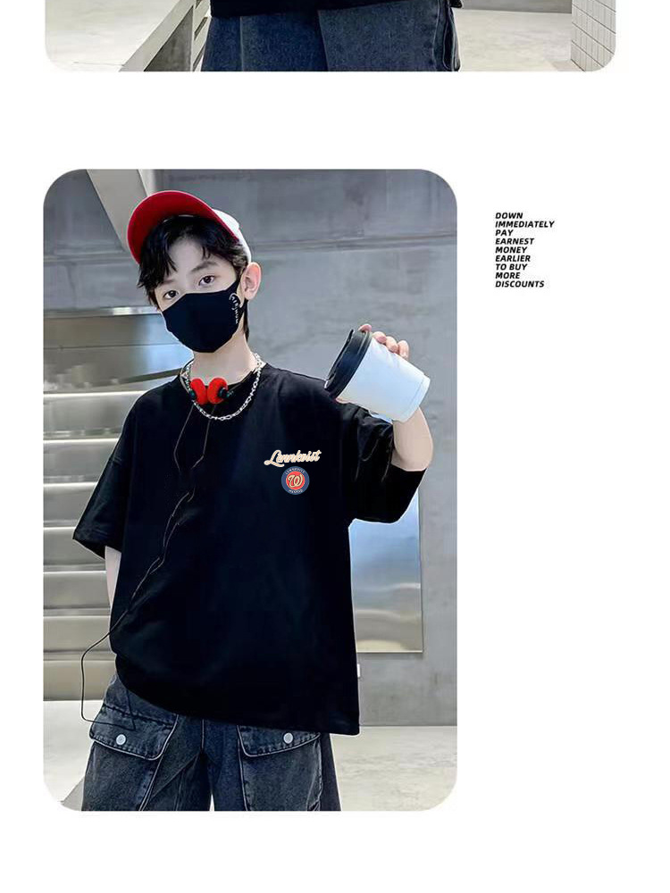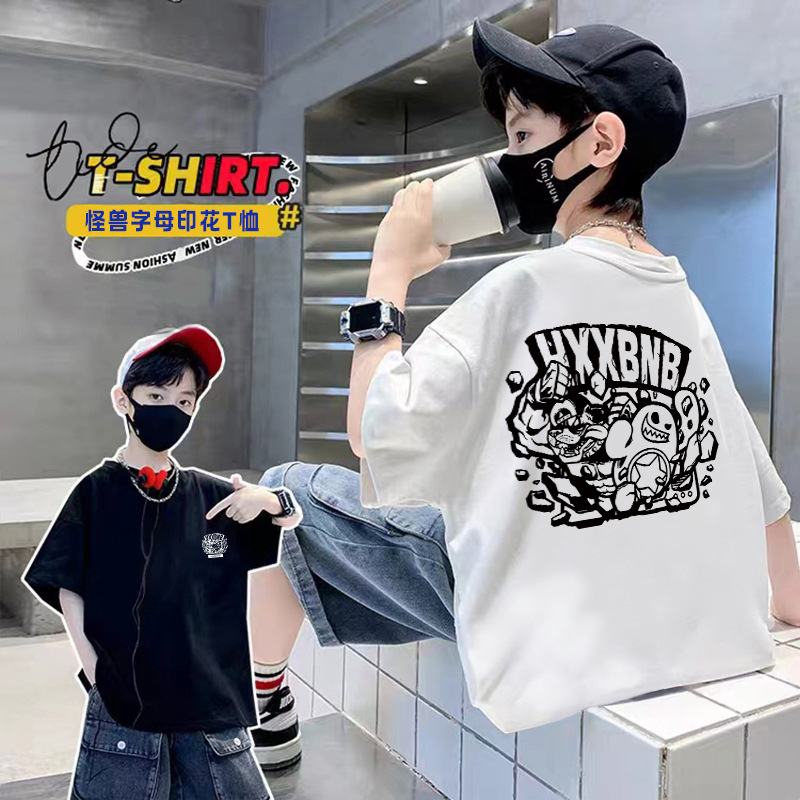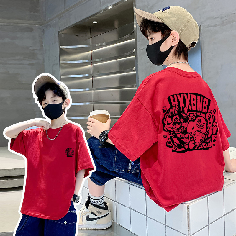 남아 여름 티셔츠 반팔 2026 신상 아동 여름 순면 반팔 티셔츠 남아 트렌디 브랜드 스트리트 스타일 상의 티셔츠