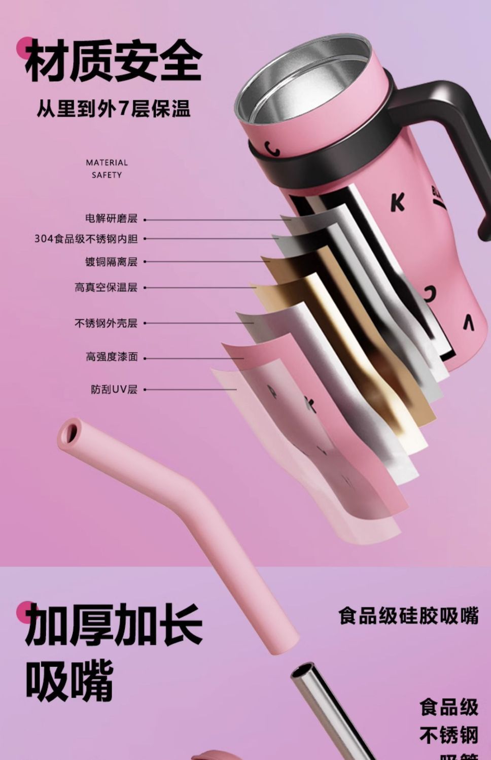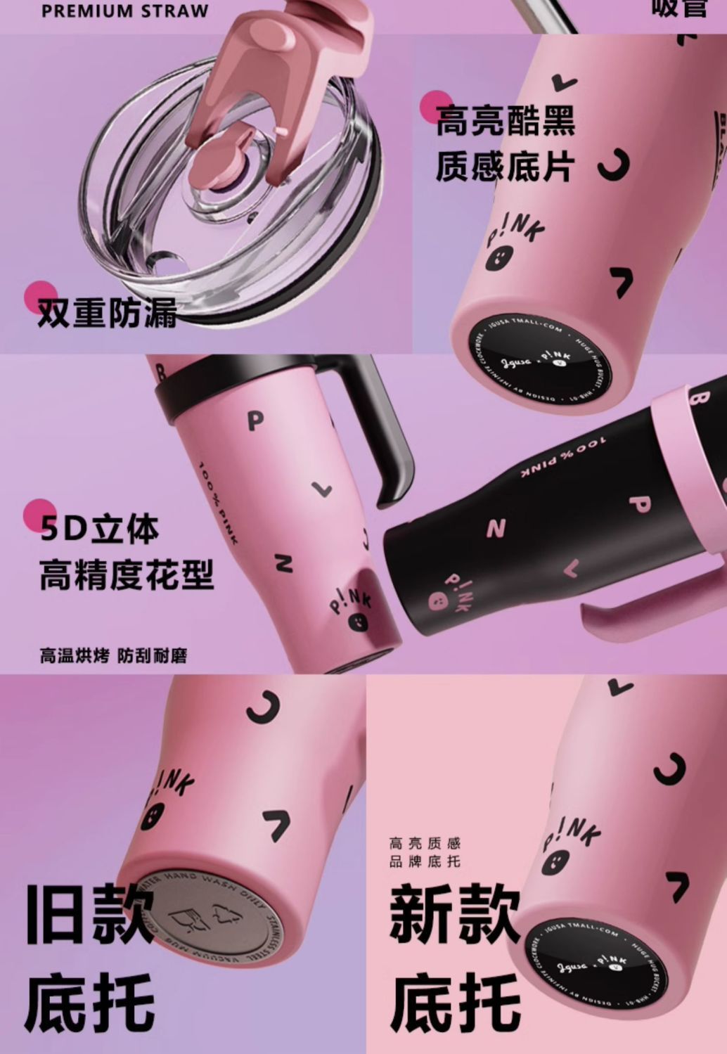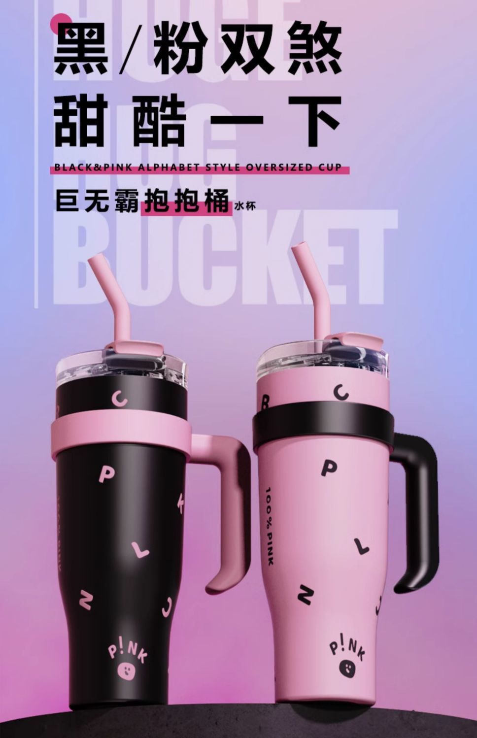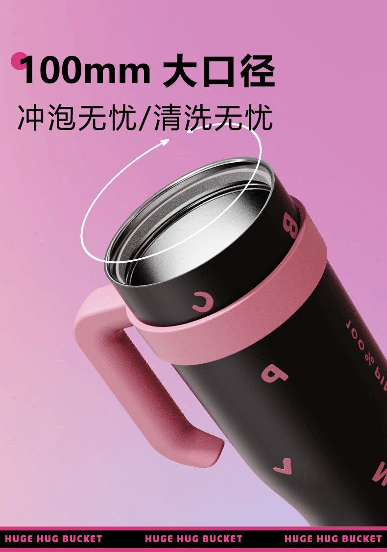 새로운 블랙 파우더 아이스 컵 절연 물 컵 빅 맥 대용량 핸들 짚 머그잔 40oz 자동차 컵