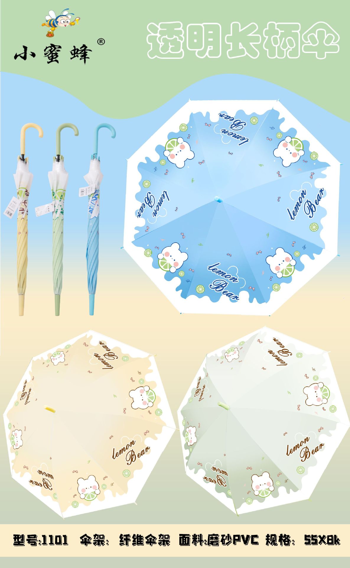 • 8 뼈 투명 우산 레몬 곰 프로스트 블루