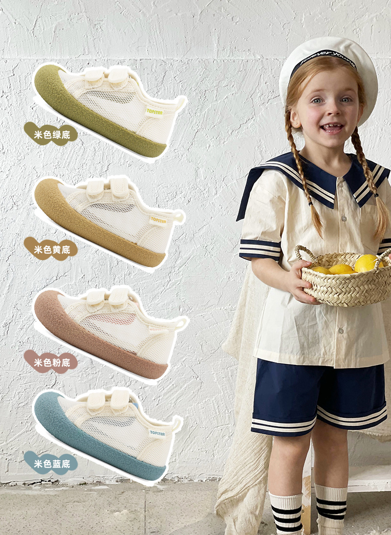 Topstar 어린이 메쉬 신발 여름 소녀 어린이 신발 벨크로 메쉬 빈 신발 아기 어린이 신발 소년 실내 신발스토어 가기