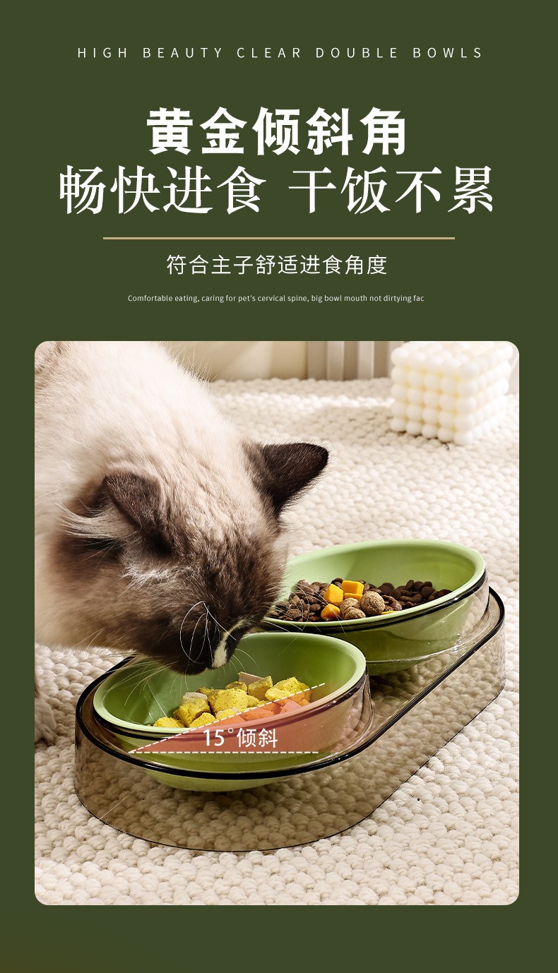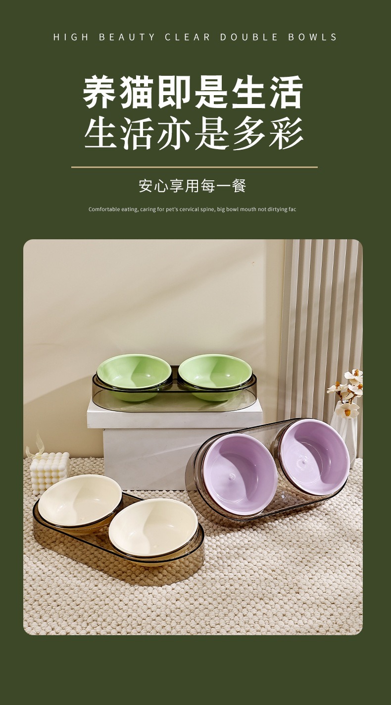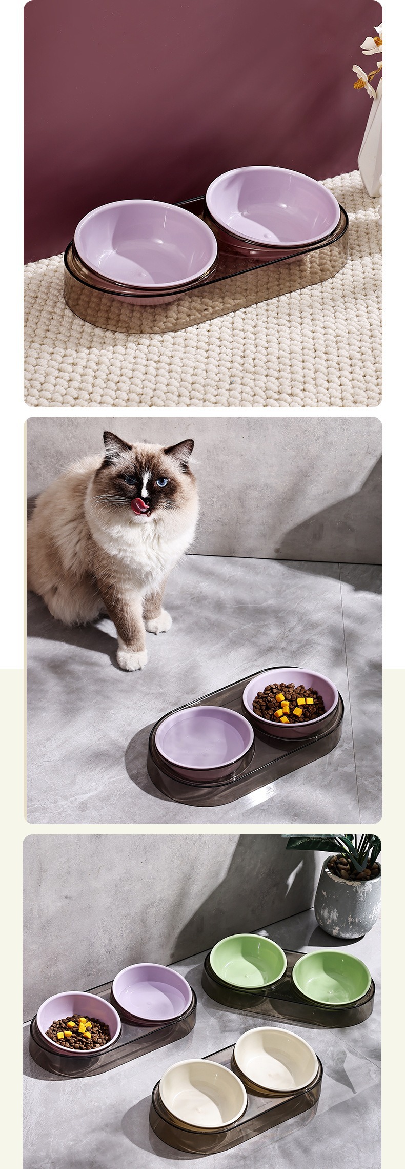 고양이 그릇 더블 그릇 플라스틱 사탕 컬러 고양이와 개 음식 분지 먹고 마시는 물 비스듬한 목 보호 대용량 애완 동물 그릇