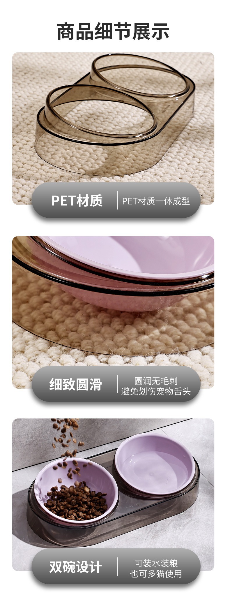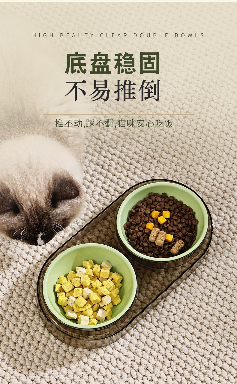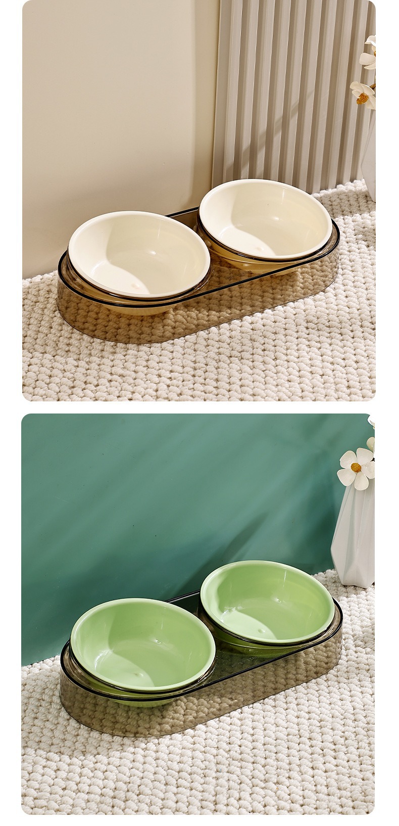 고양이 그릇 더블 그릇 플라스틱 사탕 컬러 고양이와 개 음식 분지 먹고 마시는 물 비스듬한 목 보호 대용량 애완 동물 그릇