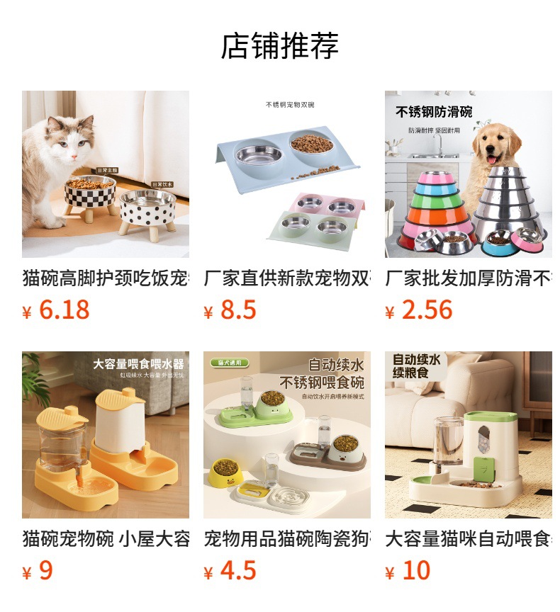 고양이 그릇 더블 그릇 플라스틱 사탕 컬러 고양이와 개 음식 분지 먹고 마시는 물 비스듬한 목 보호 대용량 애완 동물 그릇스토어 가기